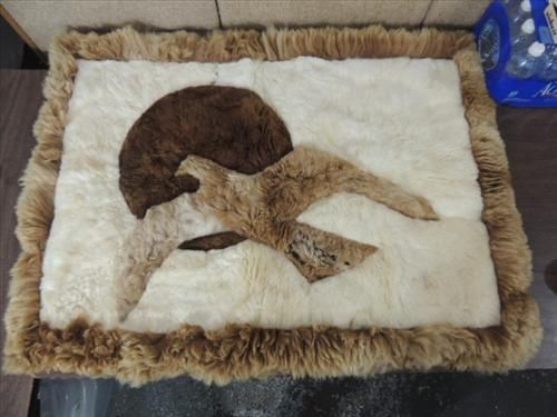 48X36 100% ALPACA AREA COVER STITCHED DESIGN. AS SHOWN. VIEW PICTURE FOR DETAIL.