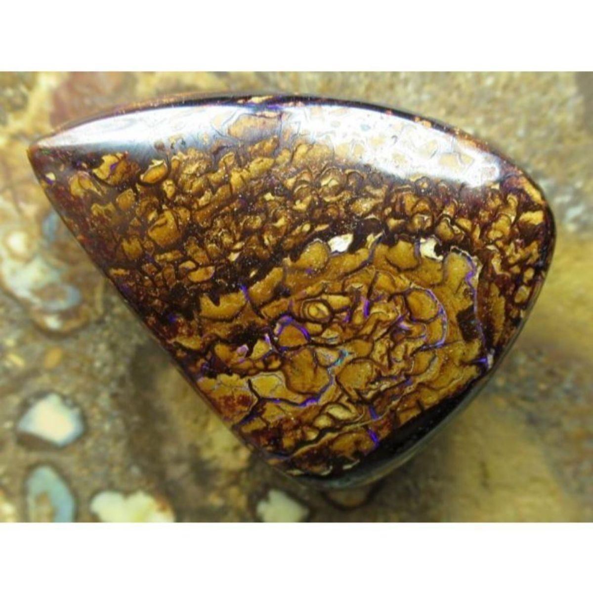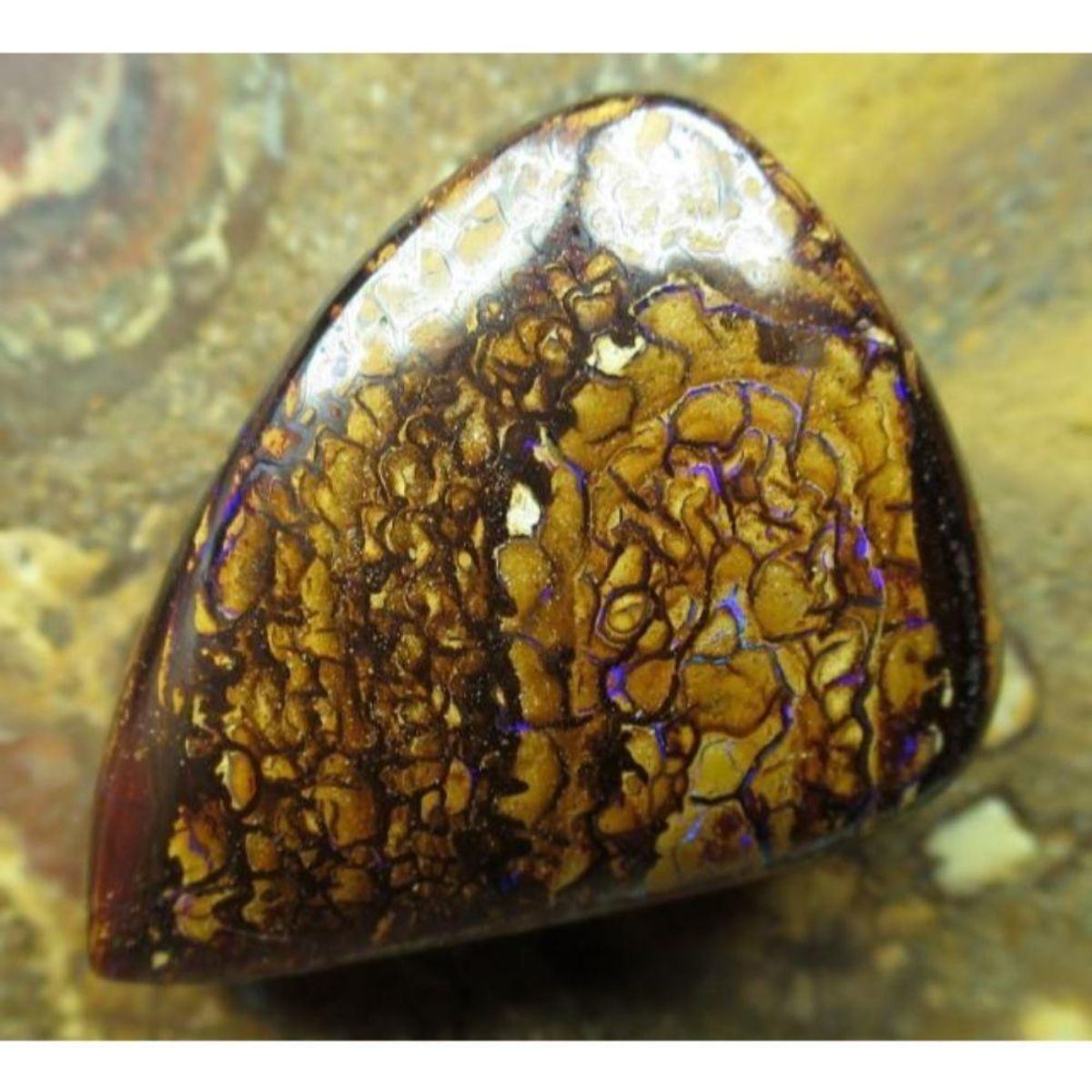 TYPE OF OPAL…................BOULDER MATRIX/UNTREATED. FIELD/ORIGIN….................QUEENSLAND AUSTRALIA. COLOUR…..........................AS PER IMAGE. PATTERN…..........................AS PER IMAGE. NO OF PIECES….........................1. BRIGHTNESS RATING 1 TO 5. =3.7. DESCRIPTION…..........................SIDE DRILLED GREAT PATTERN AUSSIE BOULDER MATRIX OPAL. (opal colour and pattern as per image, the stone you see in pictures is the stone you get.)    -- Additional General Details about Opals to Inform the Knowing Bidder: Opal is a hydrated amorphous form of silica (SiO2·nH2O); its water content may range from 3 to 21% by weight, but is usually between 6 and 10%. Because of its amorphous character, it is classed as a mineraloid, unlike crystalline forms of silica, which are classed as minerals. It is deposited at a relatively low temperature and may occur in the fissures of almost any kind of rock, being most commonly found with limonite, sandstone, rhyolite, marl, and basalt. Opal is the national gemstone of Australia. The internal structure of precious opal makes it diffract light. Depending on the conditions in which it formed, it can take on many colors. Precious opal ranges from clear through white, gray, red, orange, yellow, green, blue, magenta, rose, pink, slate, olive, brown, and black. Of these hues, the black opals are the rarest, whereas white and greens are the most common. Opals vary in optical density from opaque to semi-transparent and show opalescence, a form of iridescence. There are 9 separate factors that contribute to the price of an Opal. These factors are: Color Direction / Play of Color Pattern Body tone Brightness Shape Inclusions Where the Opal was mined Country of Origin At Lightning Ridge, in Australia, a committee values opal miner’s opals each Saturday. Several opal appraiser price each opal by carat with the final value determined by the price per carat. COLOR In order of evaluation value, the most valuable color is a dominant red, then orange, green, blue and purple. Electric blue Opals is the most valuable of the blues. DIRECTION OF COLOR Opals are a gemstone that dramatically change appearance based on the angle of view. When an Opal is at it’s brightest, this is called its ‘facing’/ andle. The direction of color will affect the price because it determines how versatile the Opal is. PATTERN Opals that have a rare or unique pattern are more valuable. The Harlequin patternis the rarest and most loved pattern in opals but it is very rare. A True harlequin pattern is a mosaic broad pattern, angular close set of colors. Floral patterns are sometimes called floral harlequin.Some top patterns are Mackerel, Block, Broad flash, Rolling-flash, Pin-fire, Rainbow and most sought out Ethiopian opal is the Honeycomb pattern. BODY TONE Opals are grouped in 9 sub categories N1 to N9 with N1 the darkest opal and N9 the lightest. Black opals are generally the most valuable and have a body tone of N1 to N4 Opals with N5 to N6 considered a semi black or dark opal. Body tone N7 to N9 are called crystal opals. BRIGHTNESS The Opal brightness guide was produced by the Australian opal association along with the body tone guide. There are 7 sub Brightness ratings with B1 the brightest to B7 the dullest. The brighter the Opal, the more expensive will be its value. SHAPE Oval stone are generally considered more valuable than free form, except with boulder opals where free form is considered desirable. The shape of the Opal once again determines how versatile it is. Oval stones generally have the best face of color and can be used in a variety of applications. Opal is almost always cut in a cabochon. A cabochon stone is more valuable when it has a high. This is due to the fact that cabochons make ideal ring stones. INCLUSIONS Inclusions and potch lines and are not to be confused with cracks. A crack line reflects light and greatly devalues an Opal. A potch line has no light reflection and these opals are generally valued lower but can make artistic picture patterns. Some Opals will have a vegetation pattern from the inclusions and this is popular as the opal has replaced some of the tree or vegetation. Sand or windows also reduce the value of the opal. A window is a gap on the bottom where potch has not formed and opal is transparent. Ethiopian opal can have a ghost or phantom inclusions or vegetation matter. These types of inclusions are generally accepted as reasonable in this type opal. OPAL FIELD SOURCE The end buyer or wholesaler might not be able to consider this factor. But in the trade certain mines have a reputation of producing good quality rough that makes excellent stones. This happens in Australian and Ethiopian opal fields. Even the depth of the mine can greatly effect value. Opal doublets and triplets do not have the same stringent criteria as solid opals and are valued considerable less. It is important to be able to pick a doublet opal compared to a solid and this can be difficult when the opal is set into jewelry. COUNTRY OF ORIGIN Australia has a worldwide reputation as the world’s most expensive opals. Many countries now produce good opals like Ethiopia, Mexico and Brazil. Each country’s opals may be unique and this factor helps determine the Opal price. Regardless of the country of origin, all opals are rare, valuable and unique. Opal Stones rank very high as an appreciating asset.  - #527-042319-CM-13-28
