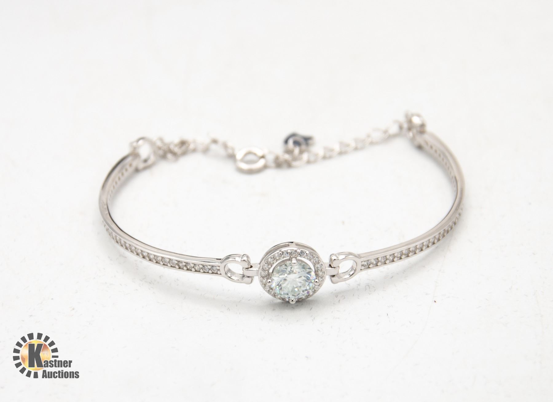 MOISSANITE VVS D COLOR WITH 84 ROUND BRILLIANT CUT CUBIC ZIRCONIA SET IN ROUND HALO SET WITH MORE SET IN BANGLE IN 925 SILVER WEIGHING 1.00 CT TW RETAIL VALUE $875.00 **ALL ITEMS MUST BE REMOVED BY 5PM SATURDAY, JUNE 1ST 2024. ALL REMAINING ITEMS WILL BE SUBJECT TO A $6.00 PER DAY STORAGE CHARGE. ANY ITEMS REMAINING AFTER MONDAY, JUNE 17TH 2024 WILL BE CONSIDERED FORFEITED. NO REFUNDS WILL BE ISSUED FOR FORFEITED ITEMS. TO SCHEDULE A PICK UP APPOINTMENT CLICK HERE