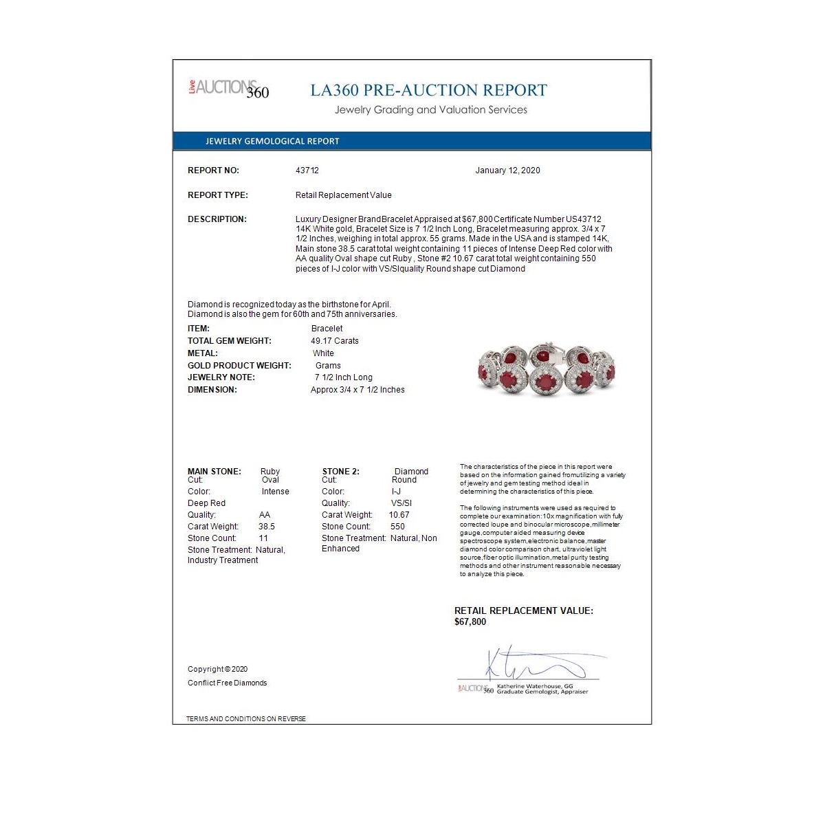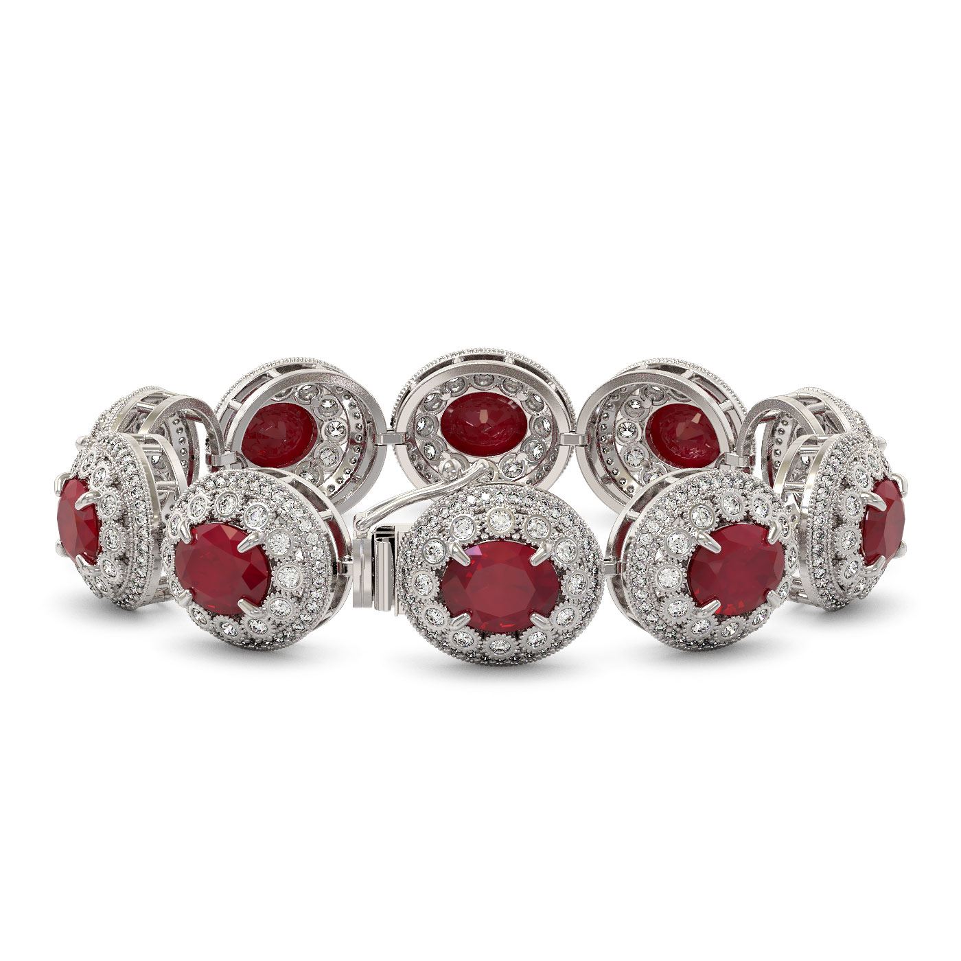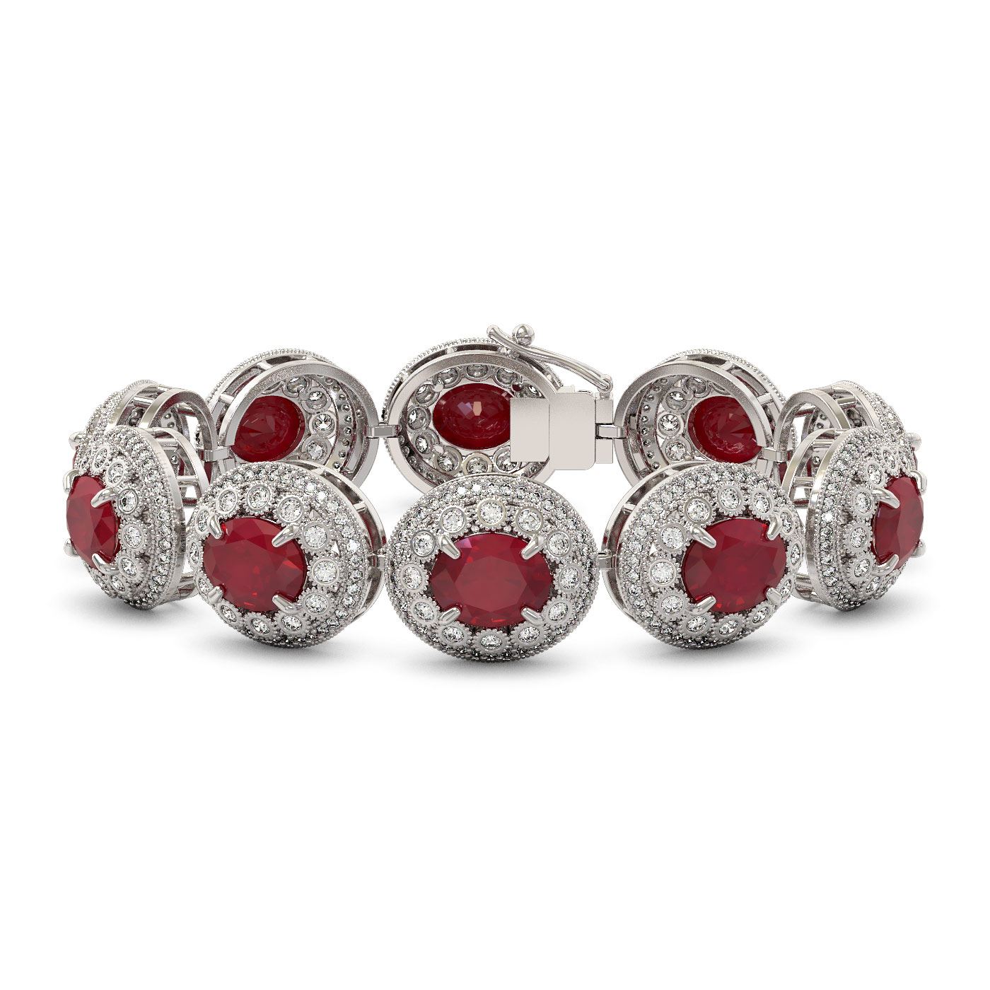 REF-1369A3N - SKU: 43712 ---- 49.17 ctw Certified Ruby & Diamond Victorian Bracelet 14K White Gold