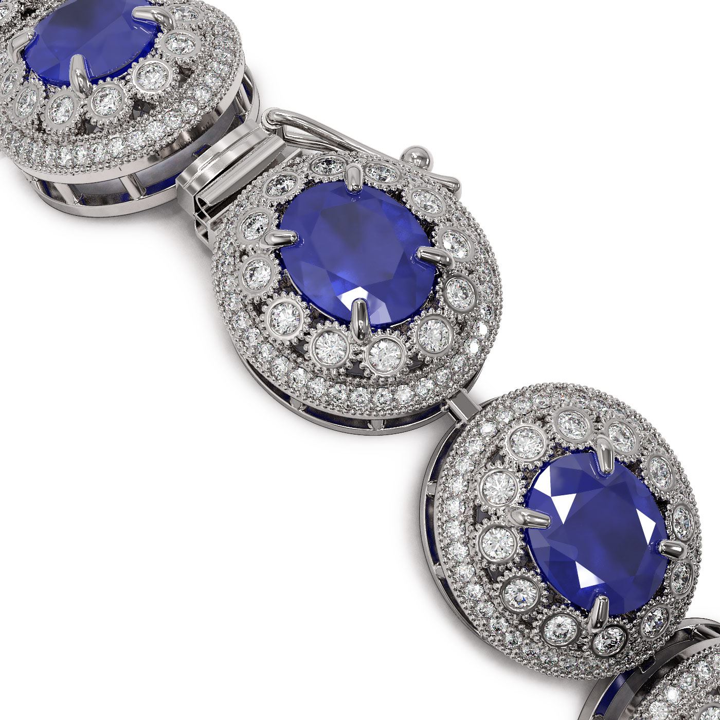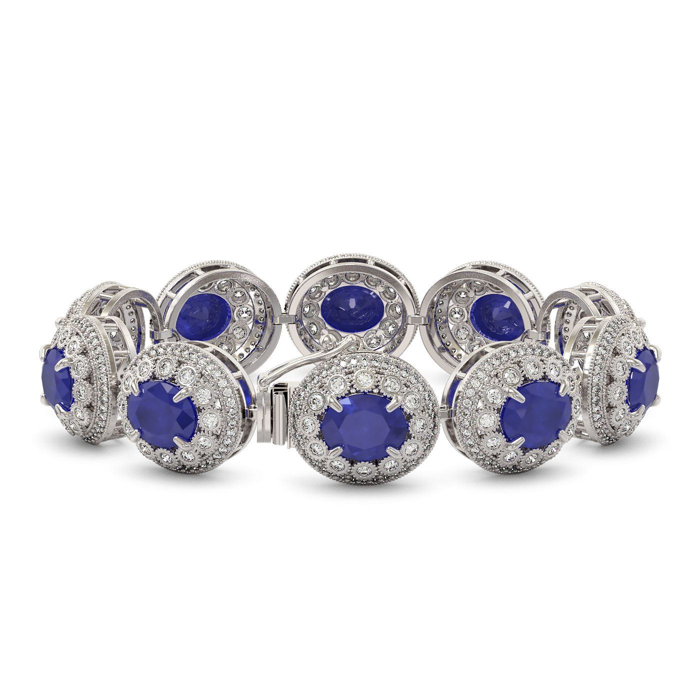 REF-1334H4R - SKU: 43715 ---- 49.17 ctw Sapphire & Diamond Victorian Bracelet 14K White Gold