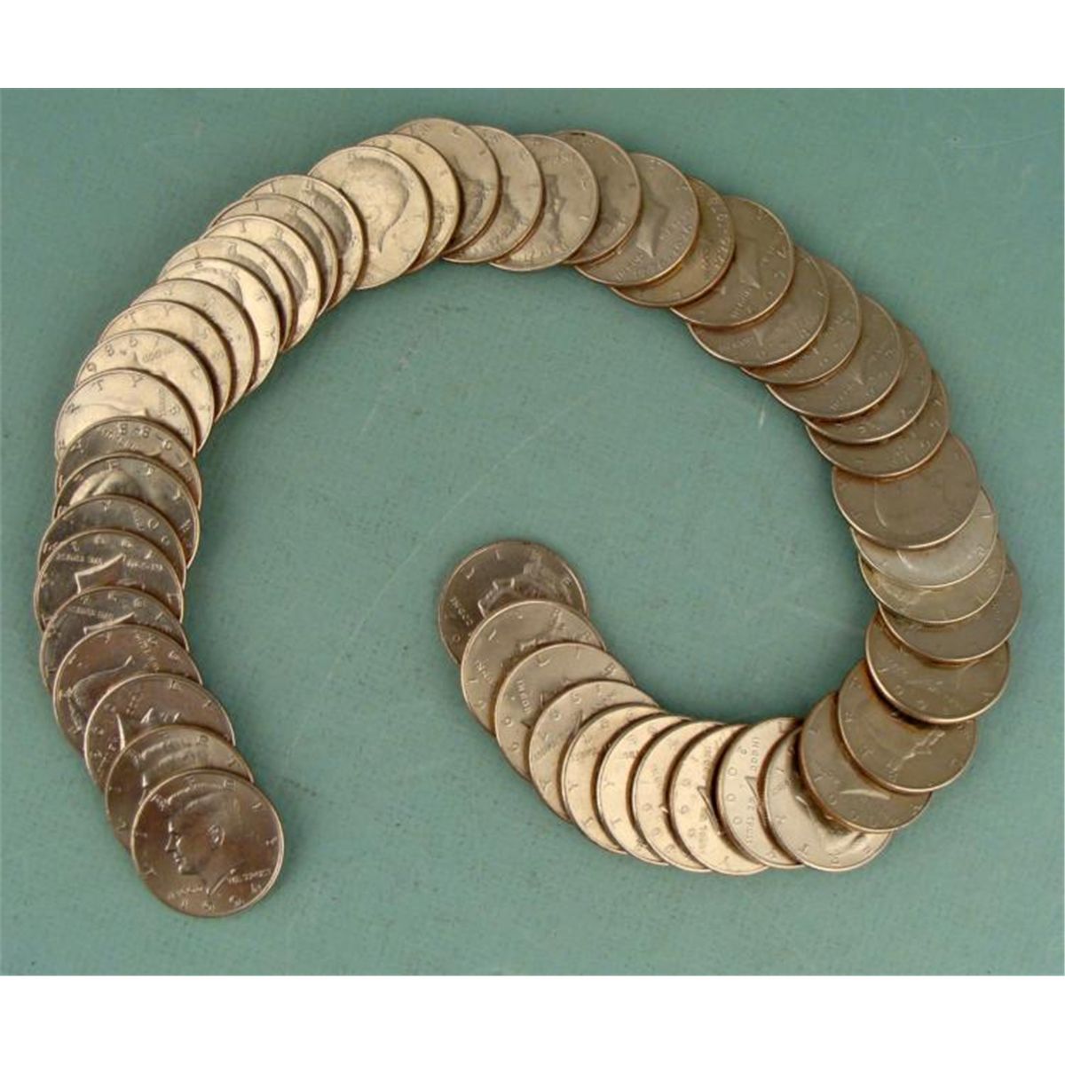 49 different date Kennedy Halves. * 1971-P, D1972-P1973-P, D1974-D1976-P, D1977-P1978-D1979-P, D1980-P, D1981-P, D1982-D1983-P, D1984-D1985-P, D1986-D1988-P, D1989-P, D1990-P, D1991-P, D1992-P, D1993-P, D1994-P, D1995-P, D1996-P, D1997-P, D1998-P, D1999-D2000-P, D2001-P * This will be a fine starter set.