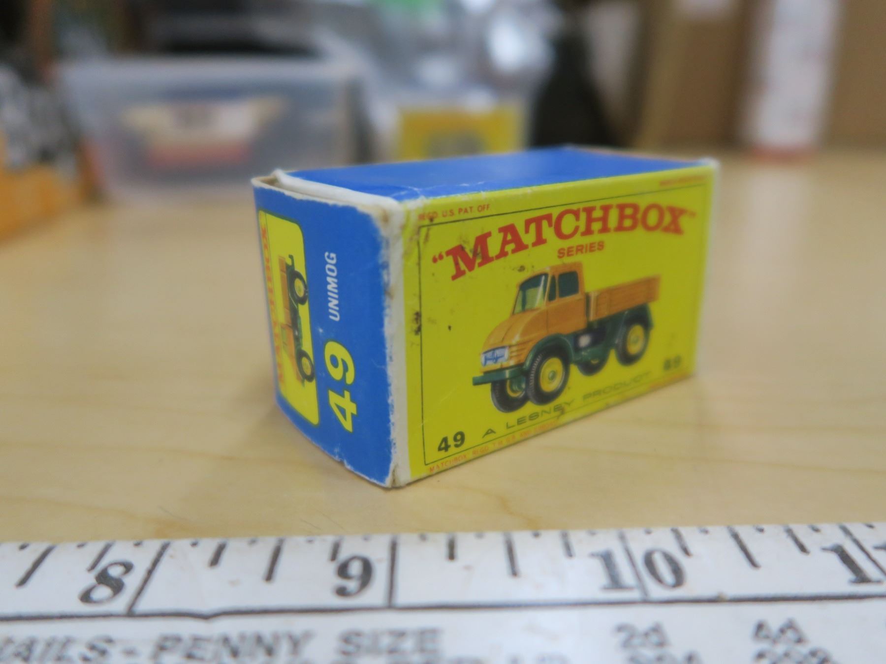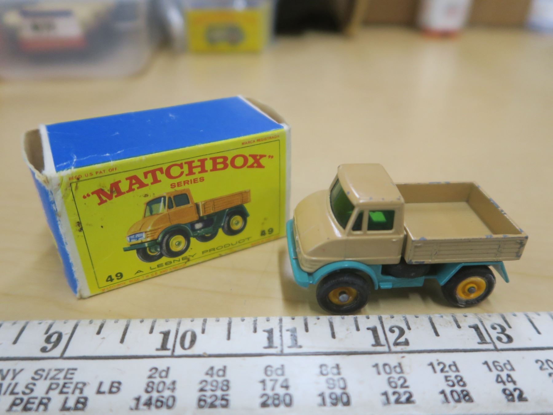 #49 Matchbox/Lesney Unimog truck green and tan color in original box - nice shape