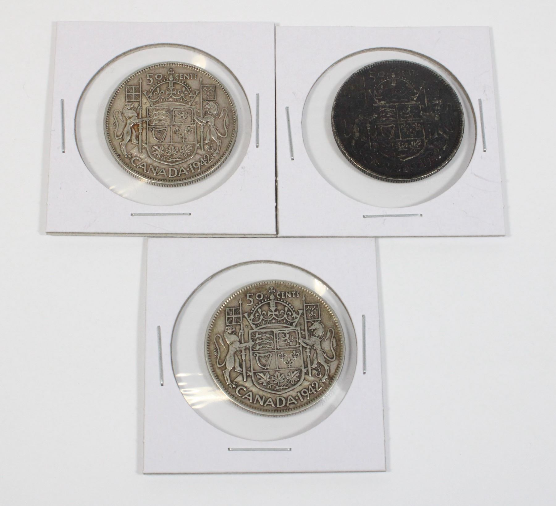#49 WW2 CANADA 1942 SILVER 50 CENT COIN LOT OF 3