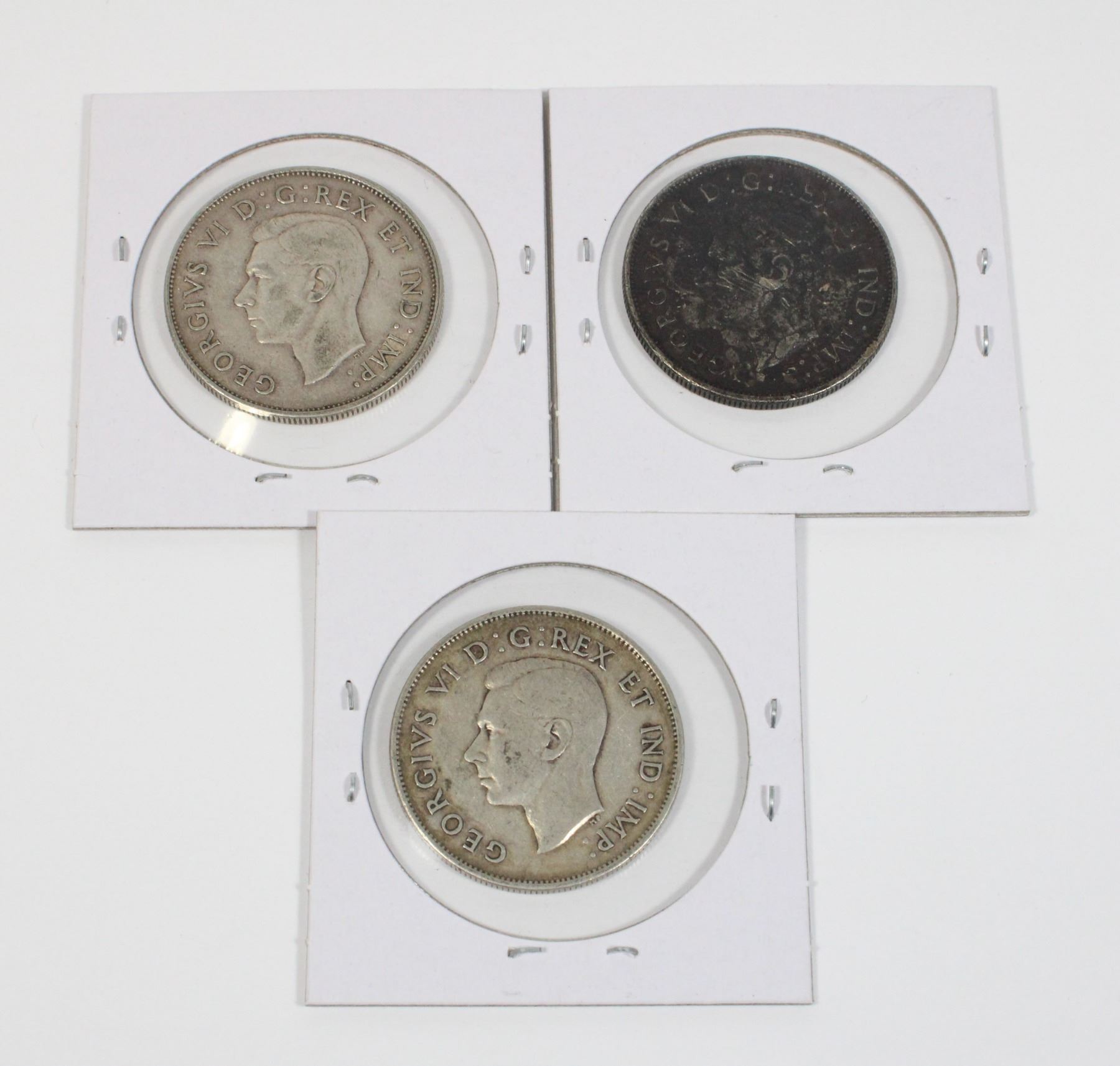 LOT OF 3 WW2 WORLD WAR TWO ERA 1942 SILVER 50 CENT HALF DOLLAR COINS KING GEORGE VI CANADA CANADIAN SILVER CURRENCY SILVER 50 CENT HALF DOLLAR COINS