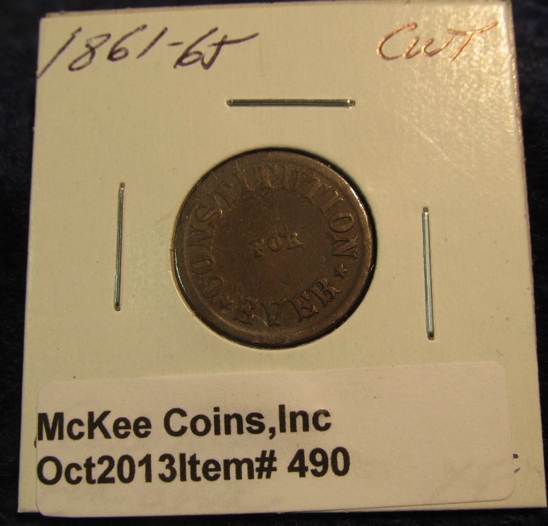 490. 1861-65 Civil War Token. "Constitution For Ever". EF.