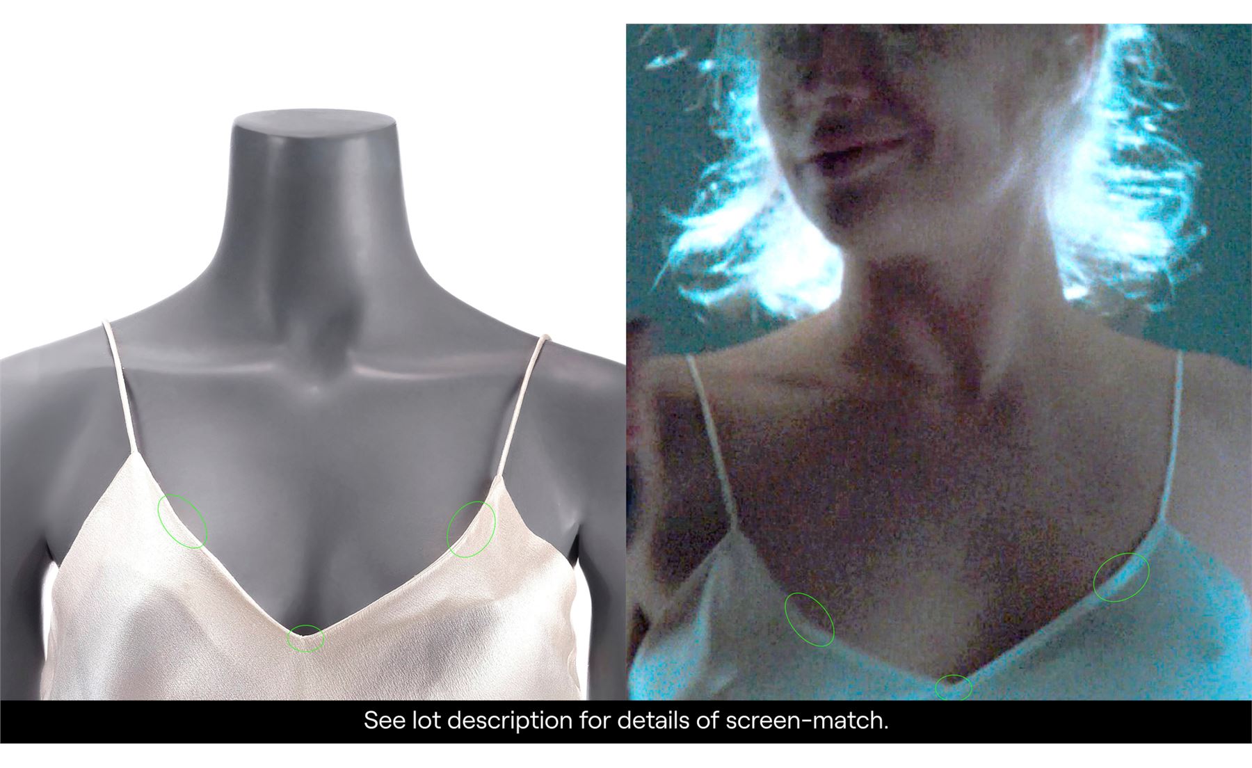 9 1/2 WEEKS (1986) - Elizabeth McGraw's (Kim Basinger) Screen-Matched Striptease Slip - Elizabeth McGraw's (Kim Basinger) striptease slip from Adrian Lyne's 9 1/2 Weeks. Inconsistencies in the neckline of this slip screen-match it to the iconic striptease sequence in which McGraw danced to Joe Cocker's "You Can Leave Your Hat On" for John Gray (Mickey Rourke).