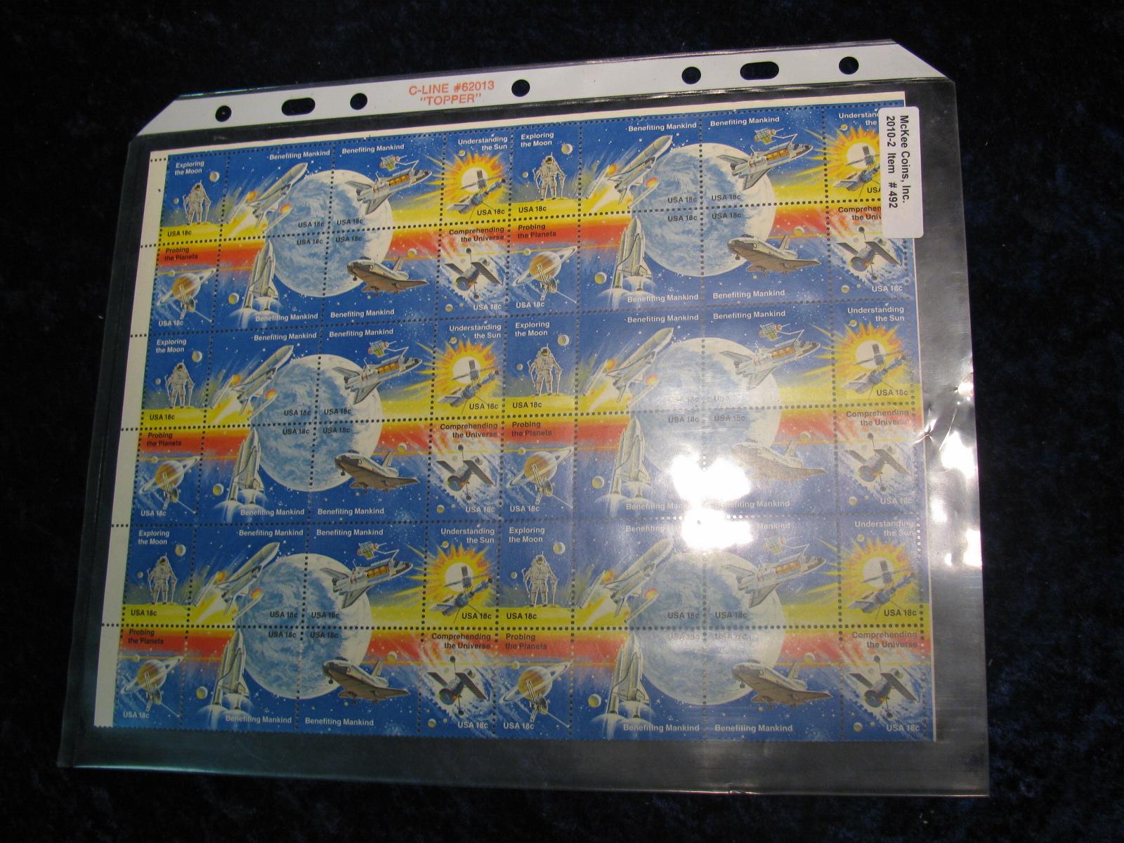 492. 1981 Mint Sheet of U.S.A. .18c Stamps on the Benefits of Space Exploration. Face value $7.20.