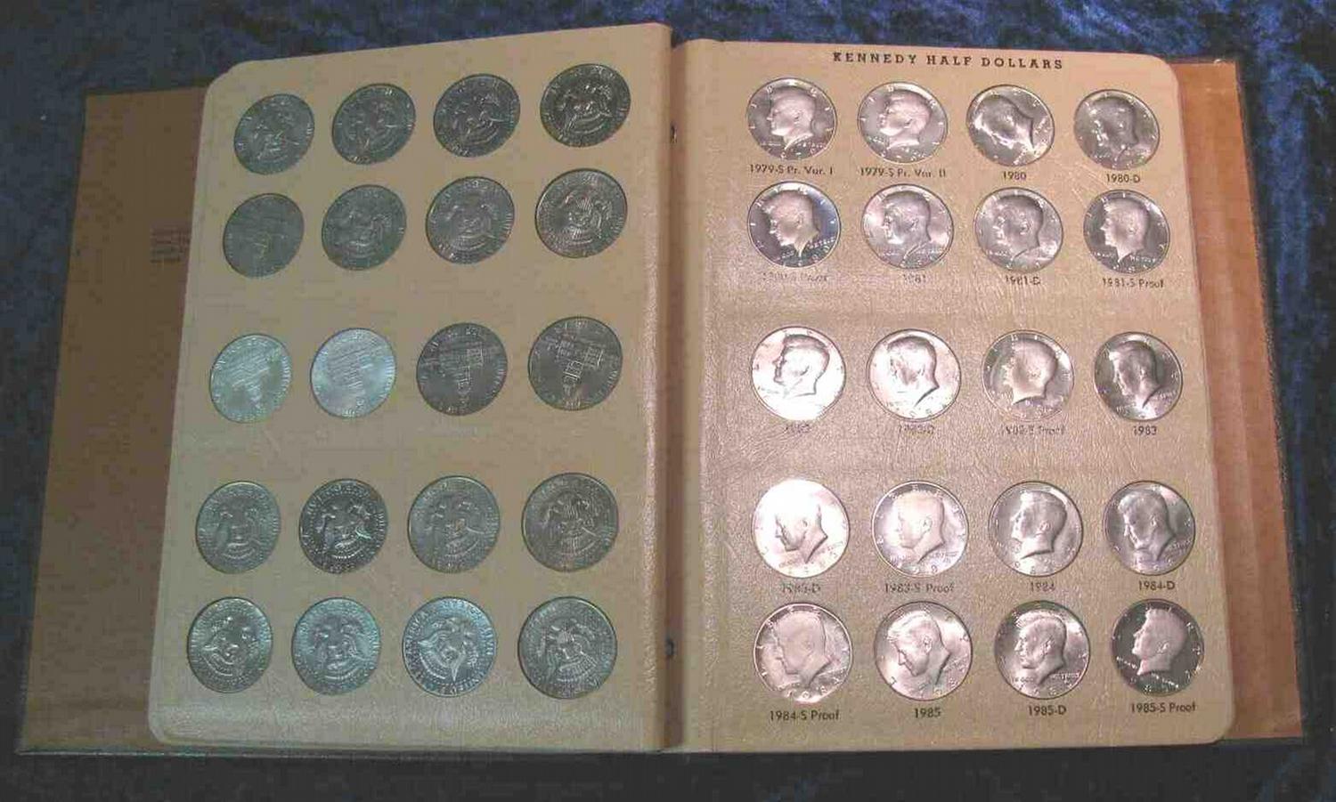 493. 1964-87 Complete Set of Kennedy Half Dollars with a 1988D & 89D also. Mounted in a World Coin Library album. Includes Proof Issues, but not Type 2 varieties. All BU or Proof.