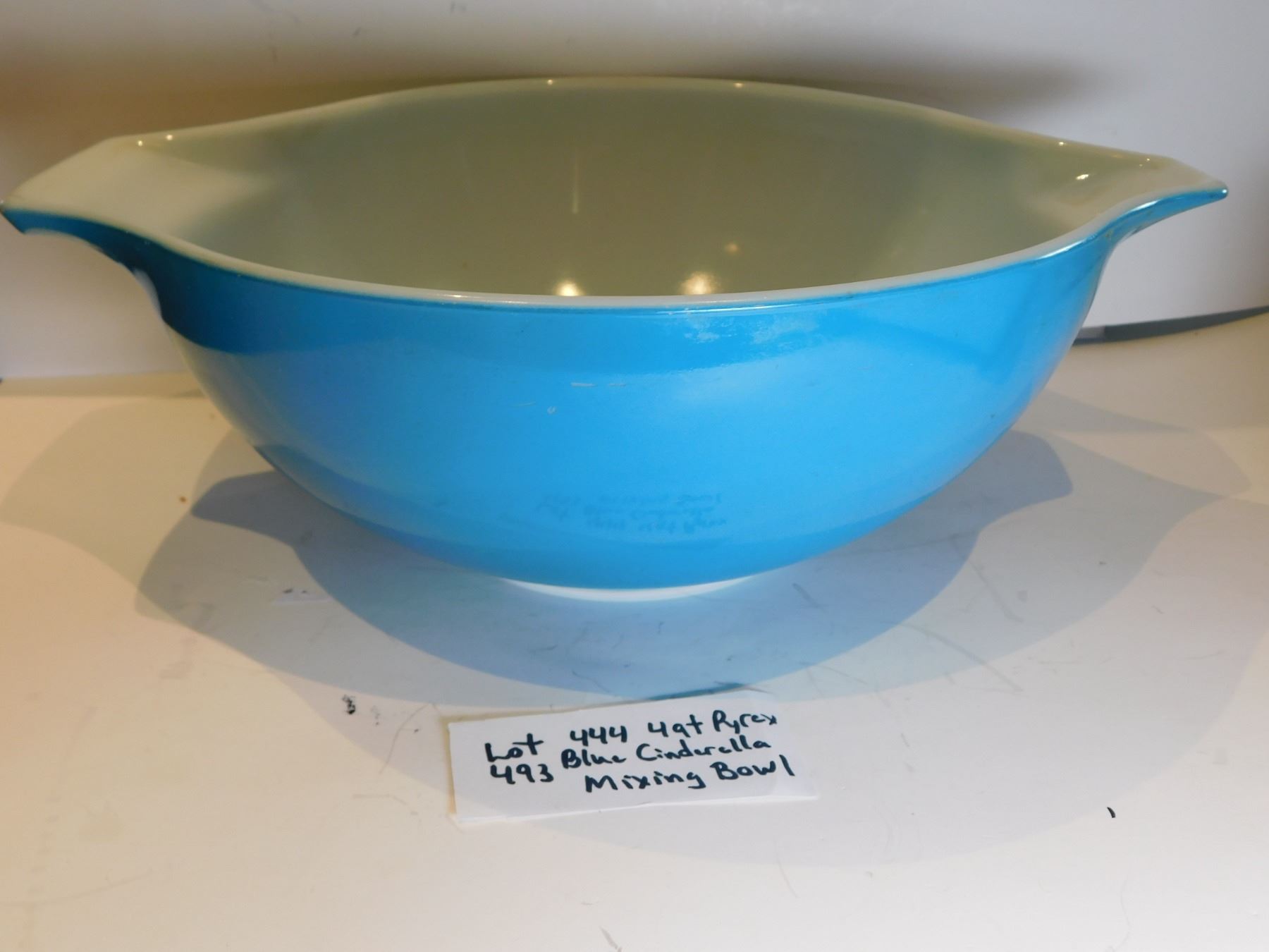 493. 444, 4 QT, PYREX BLUE CINDERELLA MIXING BOWL