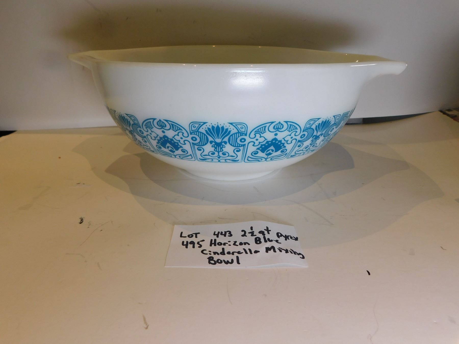 495. 443, 2 ½ QT PYREX HORIZON BLUE CINDERELLA MIXING BOWL
