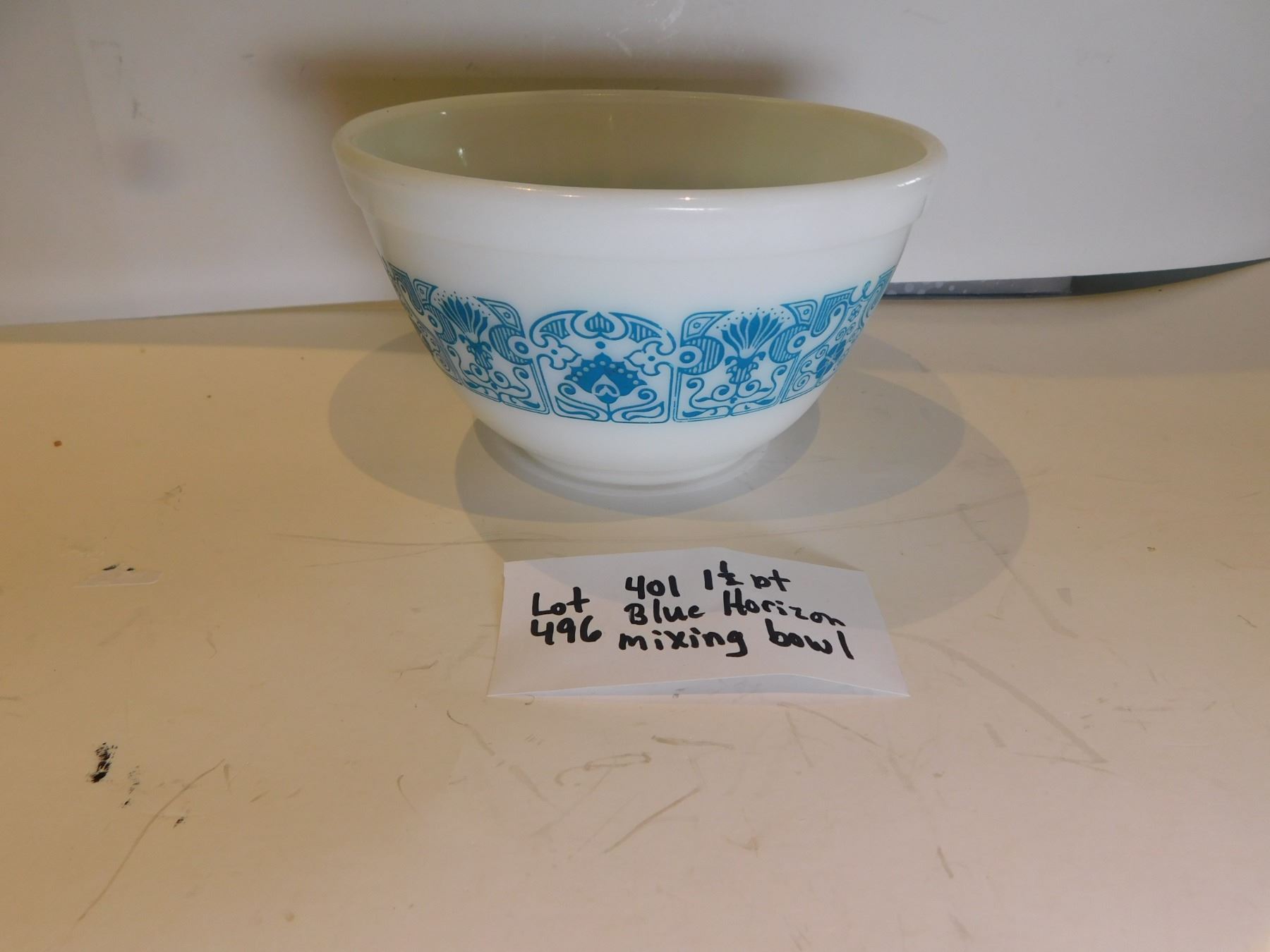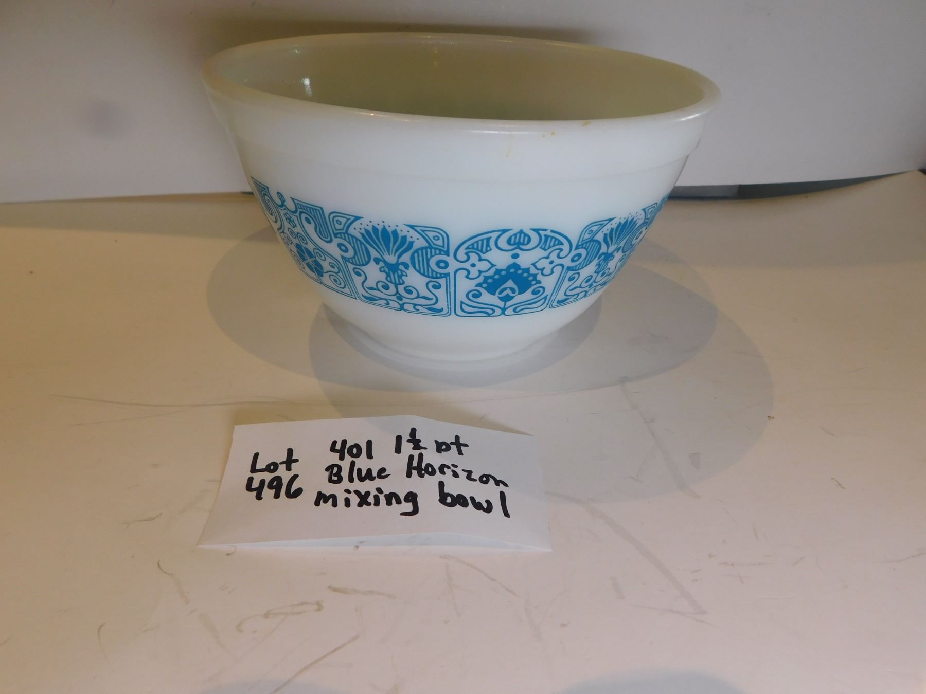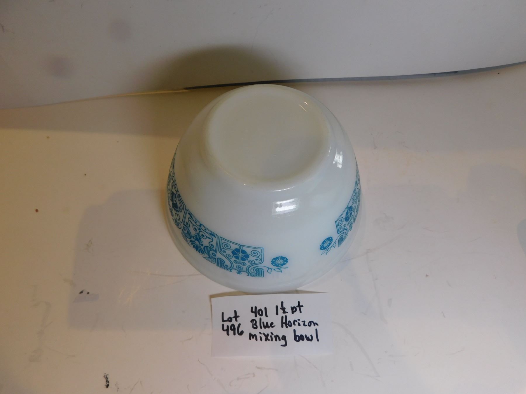 496. 401, 1 ½ PINT BLUE HORIZON, PYREX MIXING BOWL