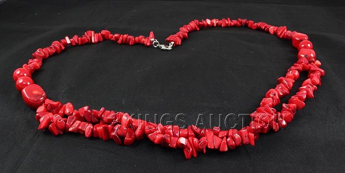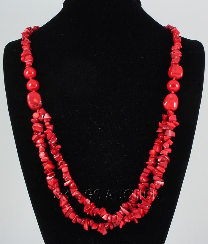 496.70CTW CHUNKY RED CORALS BEADED FASHION NECKLACE **|**|** 26 INCHES DOUBLE ROW DESIGN RED CORALS CHUNKY NECKLACE ; MSRP: $300