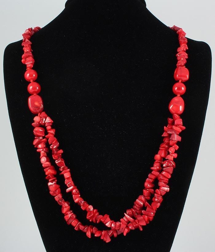 496.70CTW CHUNKY RED CORALS BEADED FASHION NECKLACE **|**|** 26 INCHES DOUBLE ROW DESIGN RED CORALS CHUNKY NECKLACE ; MSRP: $100
