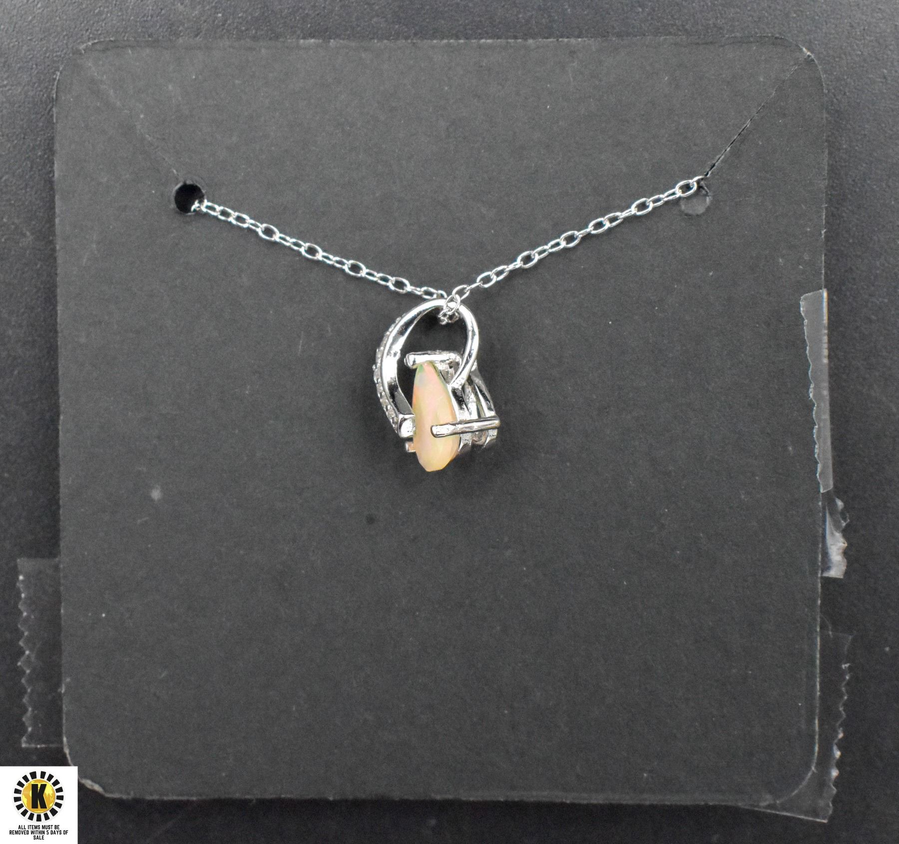.925 STERLING SILVER /NECKLACE 18" RHODIUM PLATE /JD 6 X 11 MM /CZ