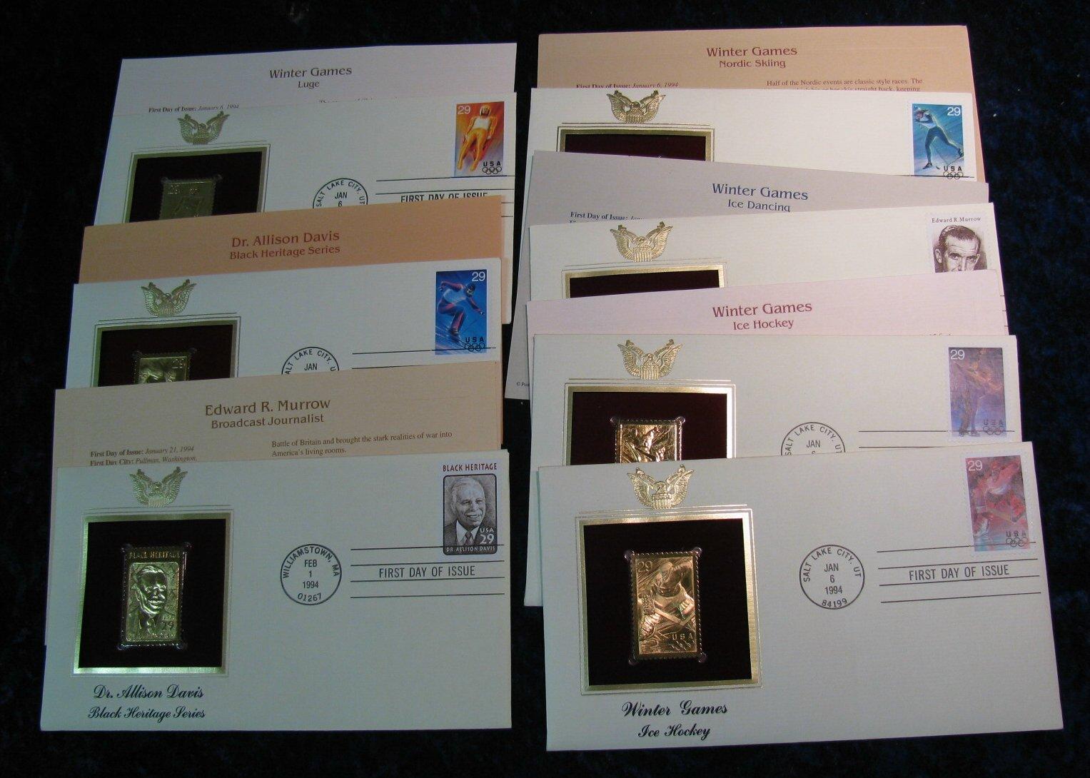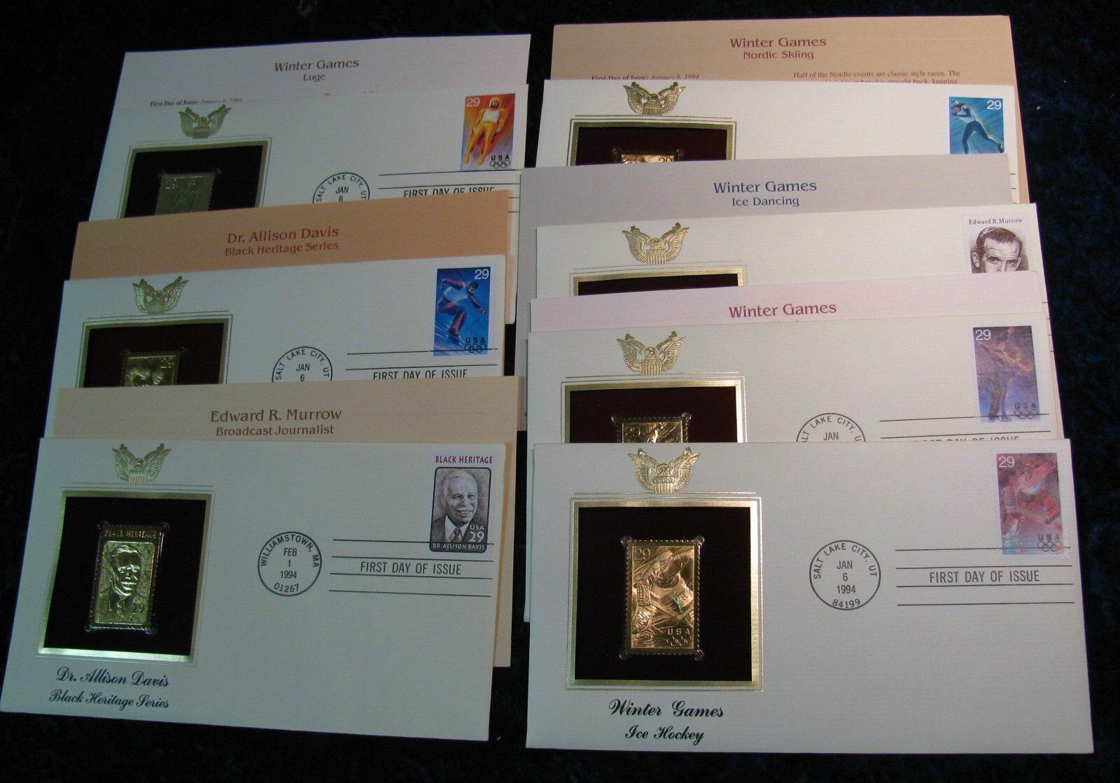 498. Set of Seven 22K Gold Replica Stamps on First Day Covers.