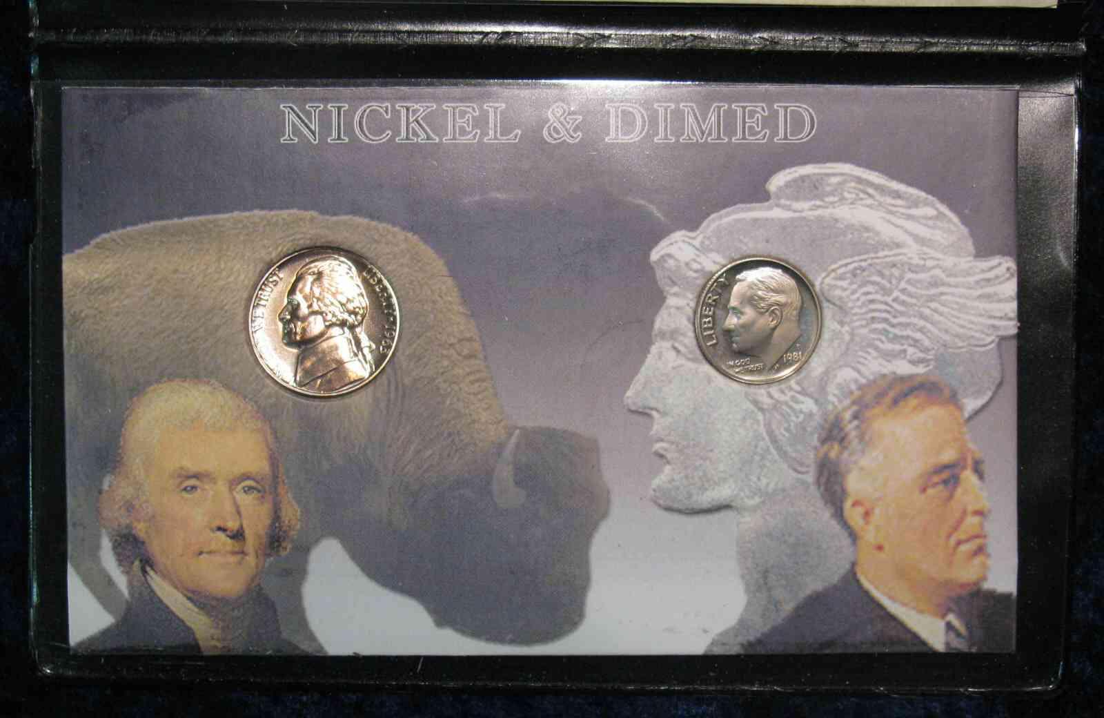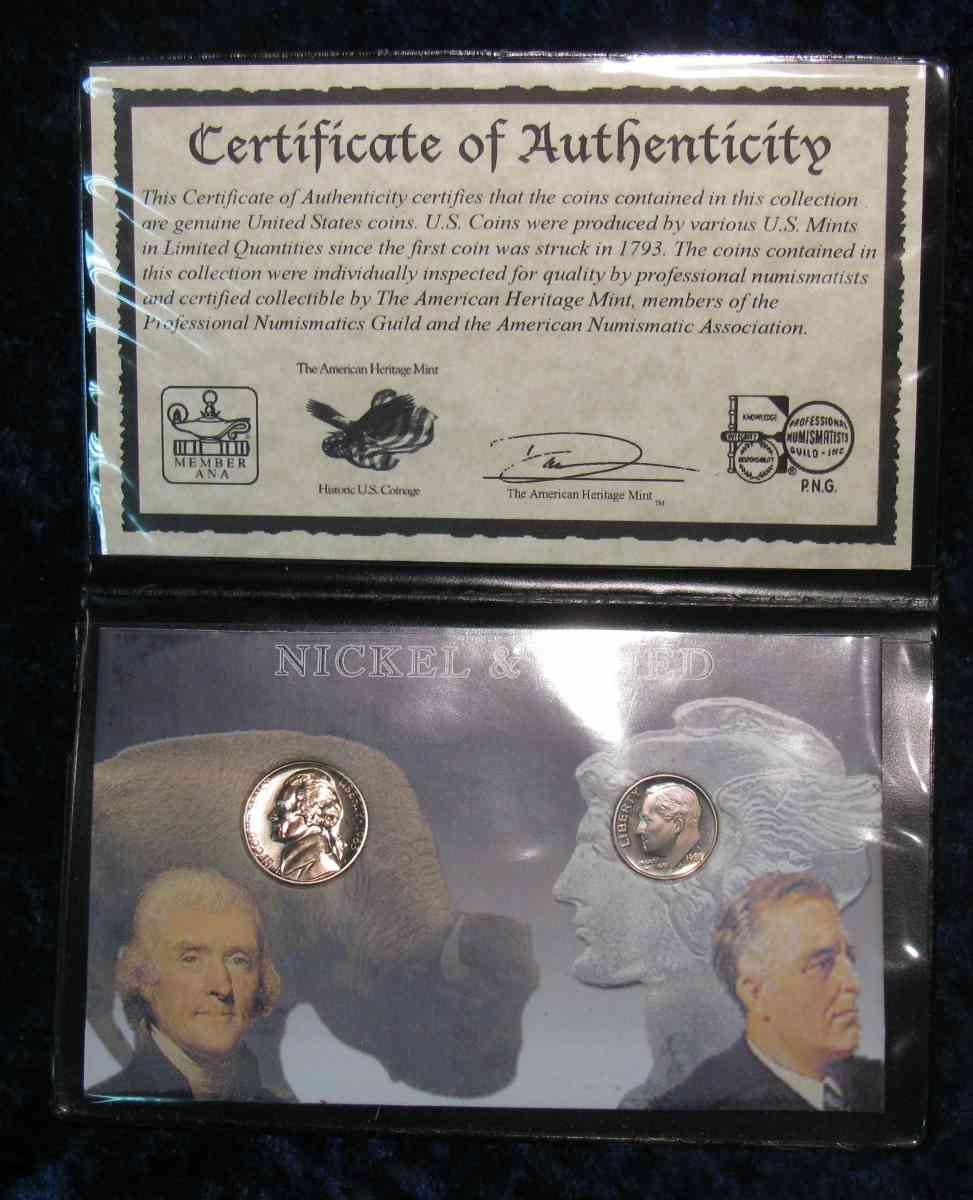 499. "Nickel & Dimed" The American Heritage Mint Historic U.S. Coinage Set with 1963P Proof Jefferson & 1981 S Proof Dime.