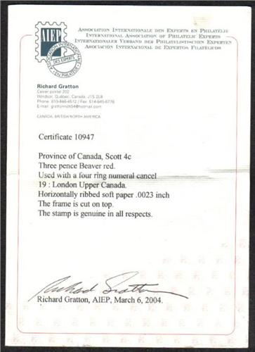 #4C USED IMPERF BEAVER C$400,00 WITH CERTIFICATION