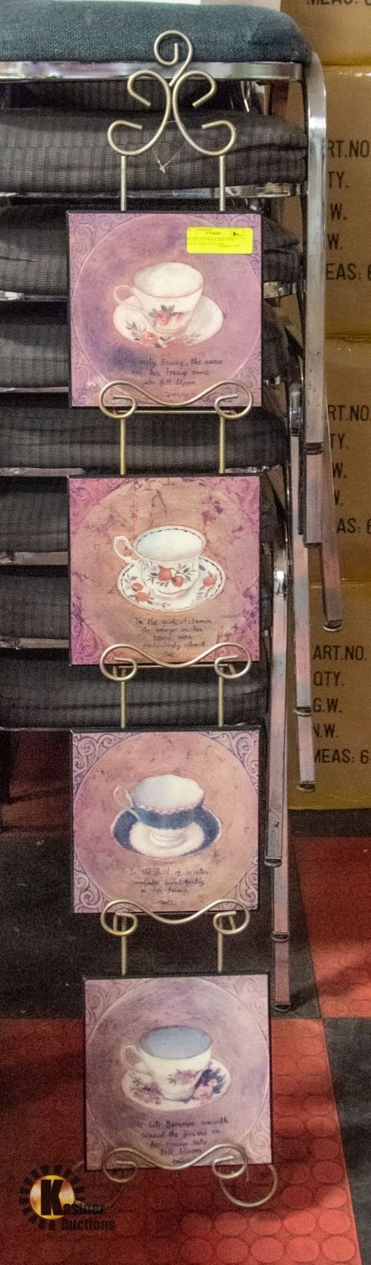 4PC TEA CUP WALL ART WITH METAL DISPLAY STAND