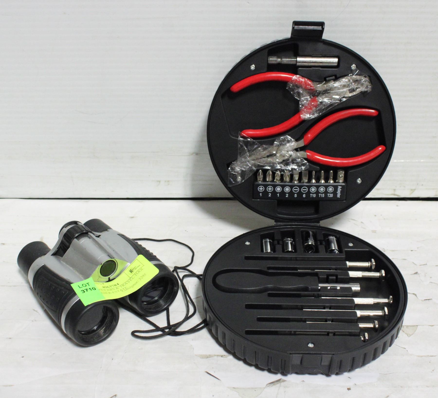 4X30 BINOCULARS & TRAVEL TOOL SET TOGETHER-ESTATE