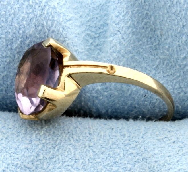 In 10K yellow gold, there is a 11.5x8.5mm oval amethyst gemstone that weighs approx. 4cts. Size 5 3/4