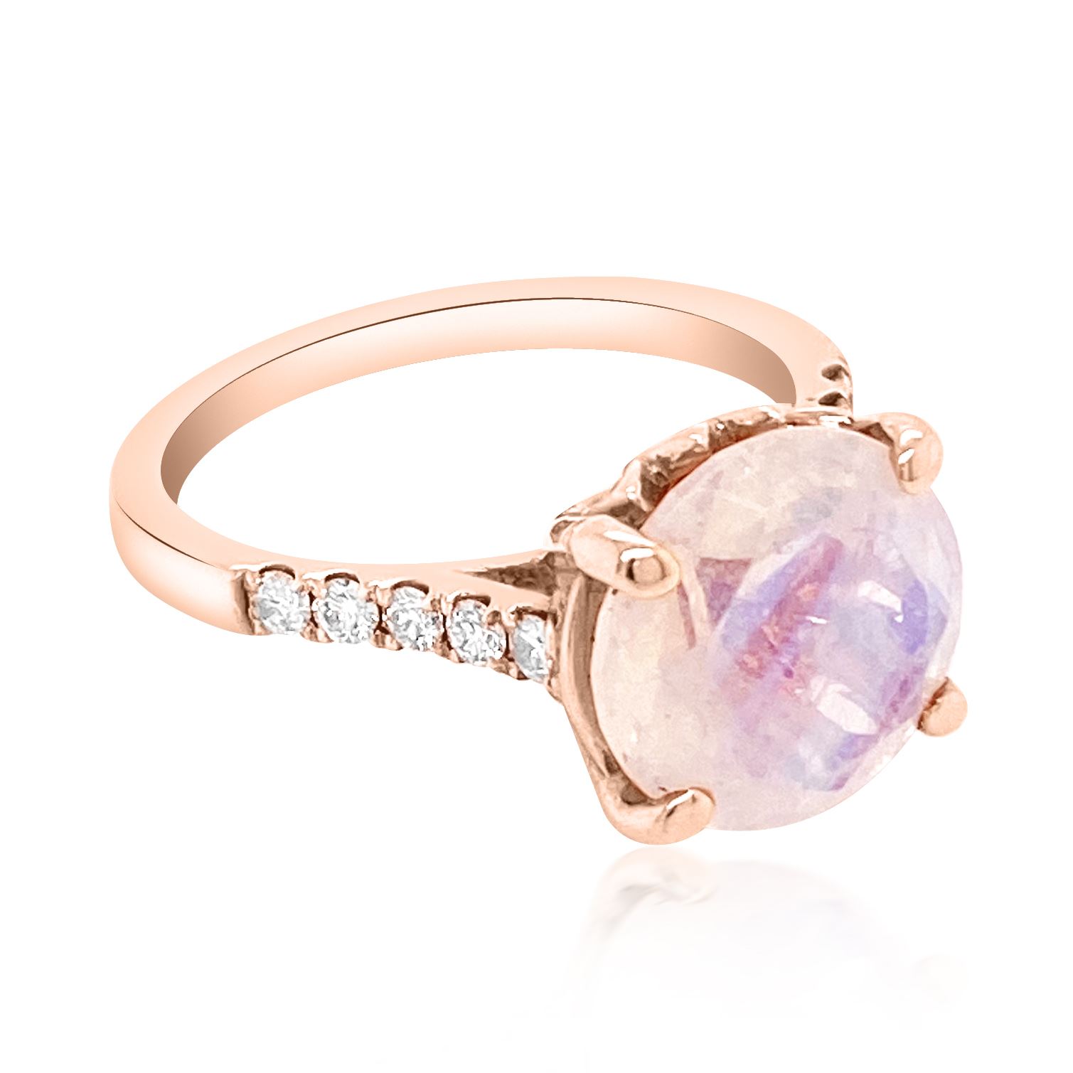4ct Natural MOON STONE 14K Rose Gold 4.5gm Diamond 0.27ct Ring #PJ3920