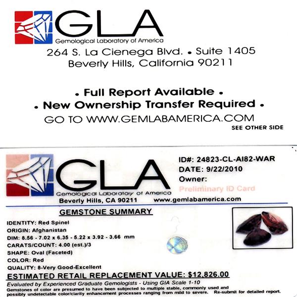 Excellent red colored parcel 3 pieces oval cut; lab quality evaluation 8; treatment as noted; Gem Guide wholesale $1600-$3000; full retail appraisal $12826; full lab evaluation available