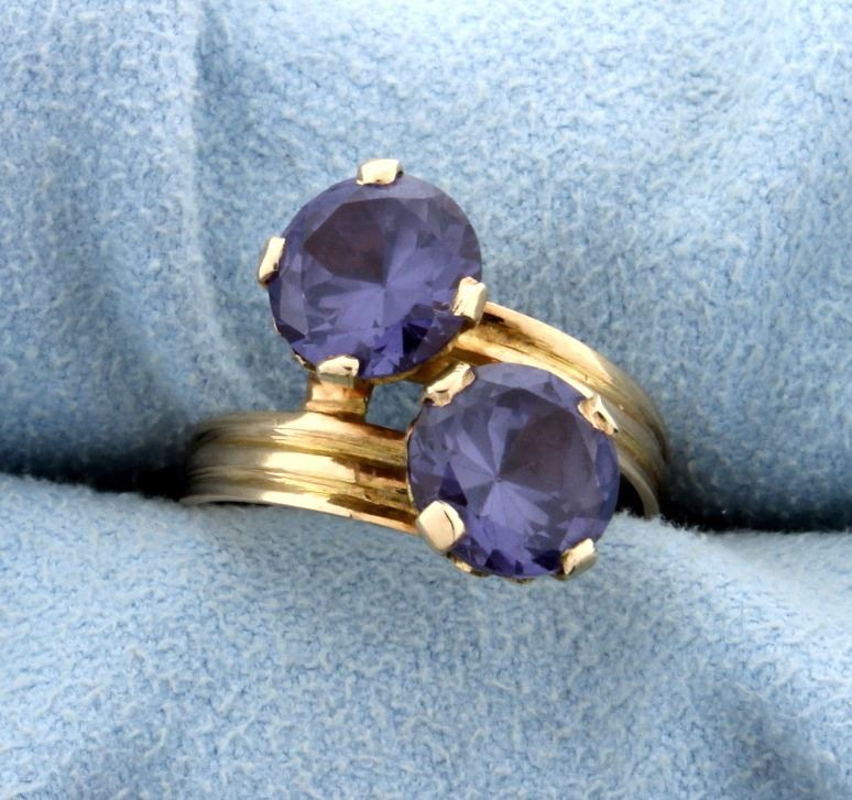 In 14K yellow gold there are two 8mm round blue spinel gemstones with deep blue color. Size 7 3.4g