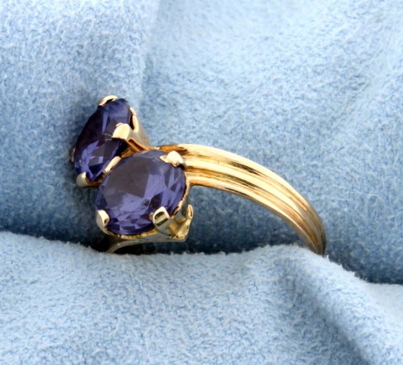 In 14K yellow gold there are two 8mm round blue spinel gemstones with deep blue color. Size 7 3.4g