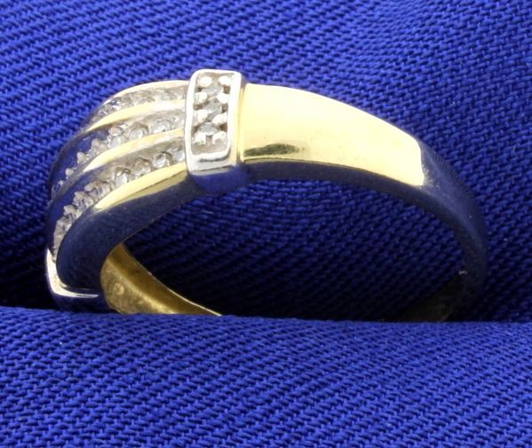 In 10K yellow gold, the ring contains .4ct total weight of full cut .01ct diamonds. Size 7 2.5g