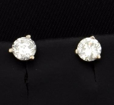 In 14K yellow gold these earrings have a stylish 3 prong martini setting. Diamonds are I1 clarity/I color, they face up bright with lots of sparkle. Comes with friction backs. .4g