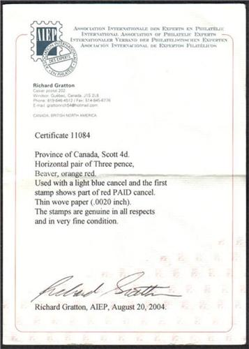 #4d VF USED IMPERF PAIR WITH CERTIFICATION