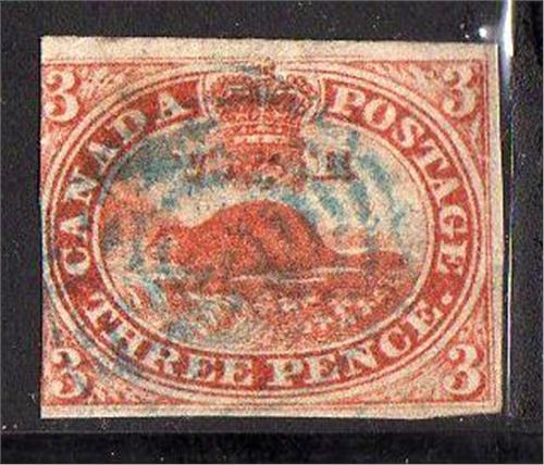 #4iv F-VF GREEN CANCEL IMPERF BEAVER C$300,00