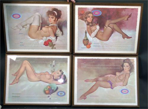 4pc 1971 Harolds Club Pin Up Calendar, framed
