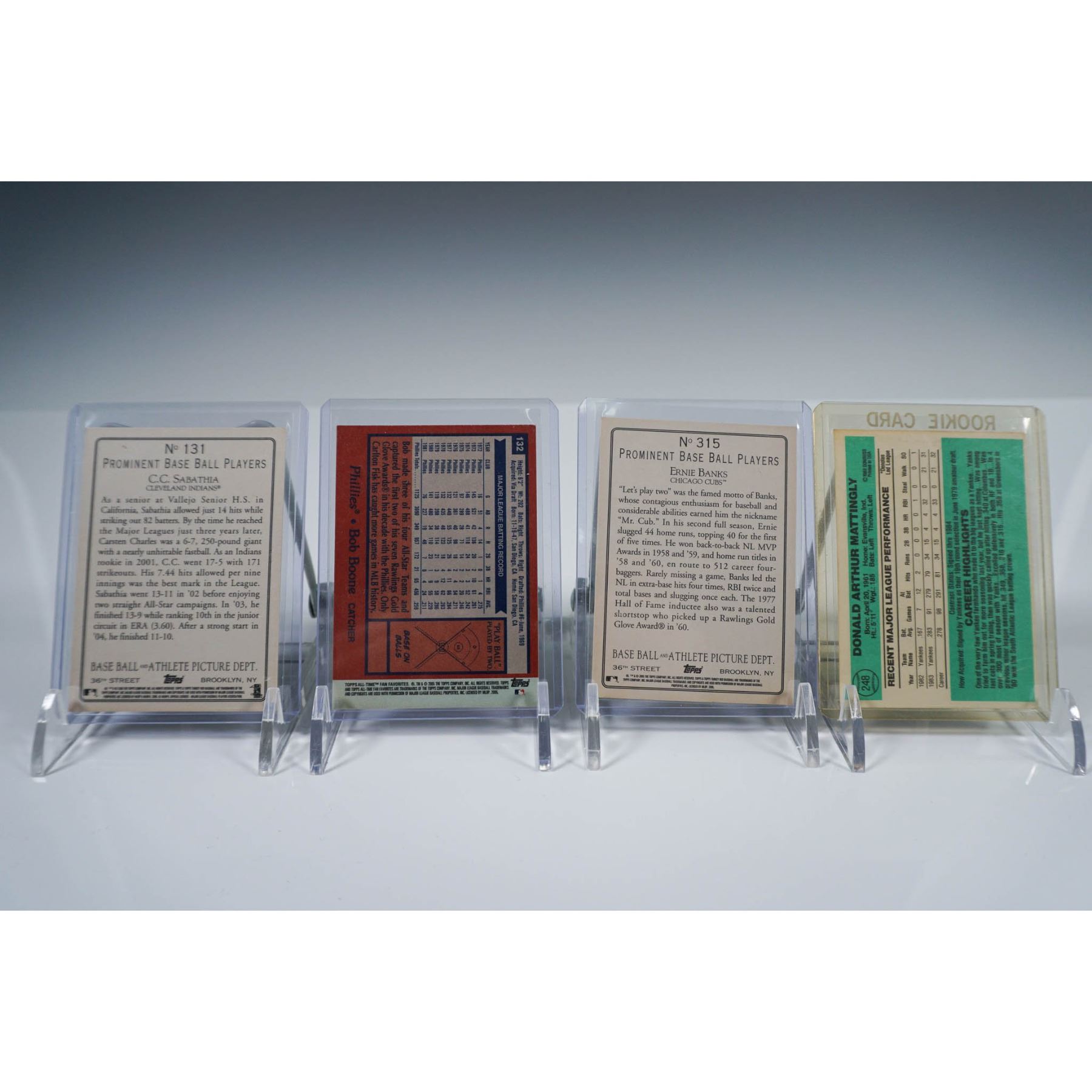 4pc Baseball Card Collection, Mattingly, Banks, Boone, Sabathia