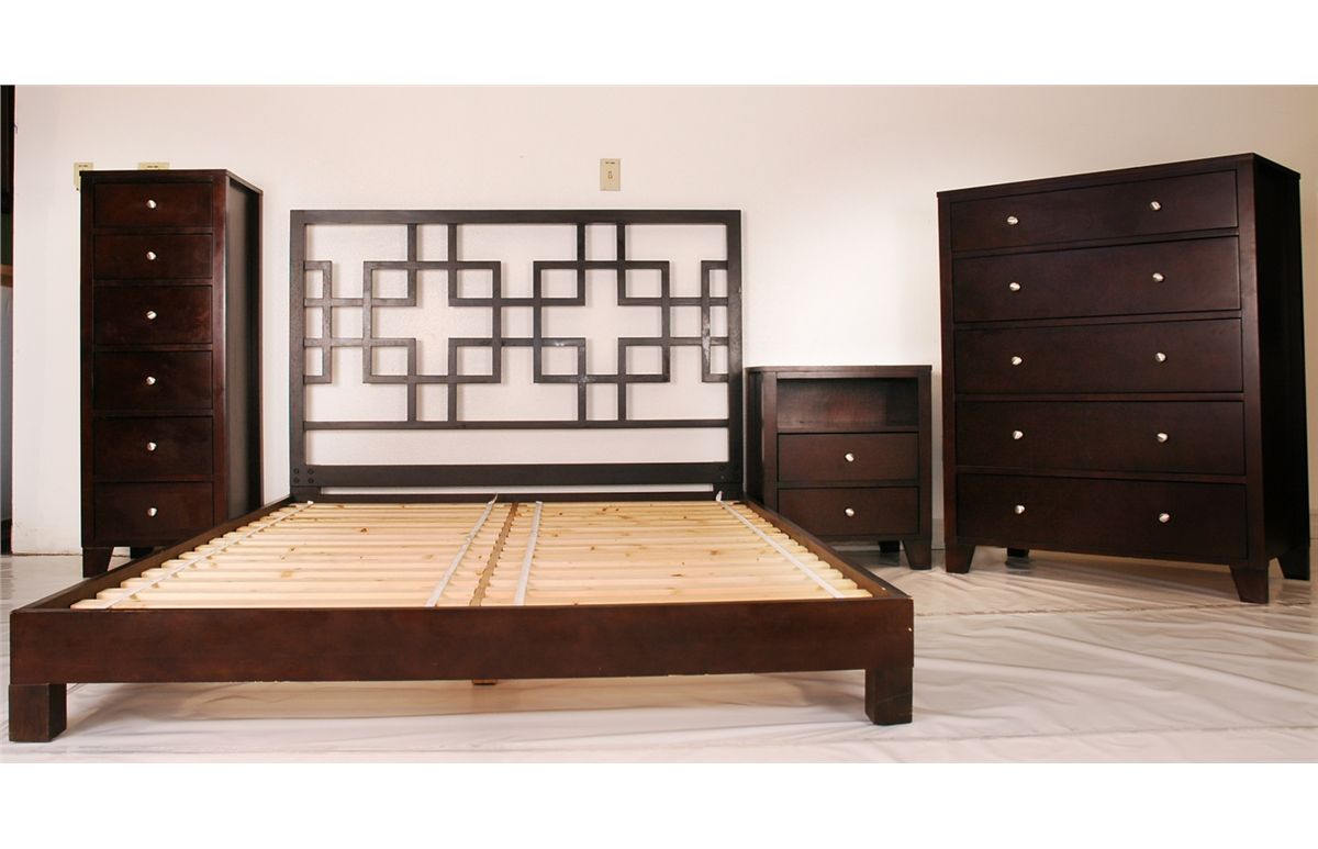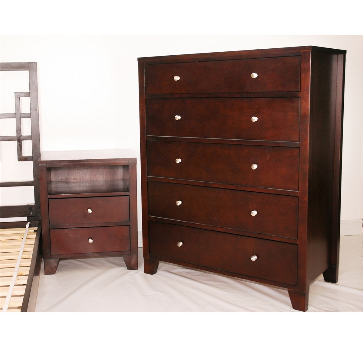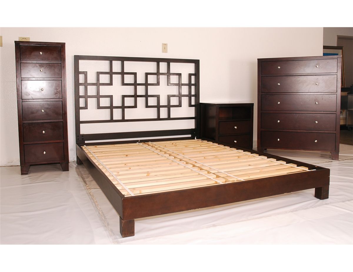 Pre-owned 4pc Bedroom Set, includes Queen size bed, 1 night stand, 5 drawer chest, 6 drawer chest. Espresso Finish