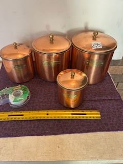 4pc Copper Cannister Tea, Coffee, Suger, Flour.