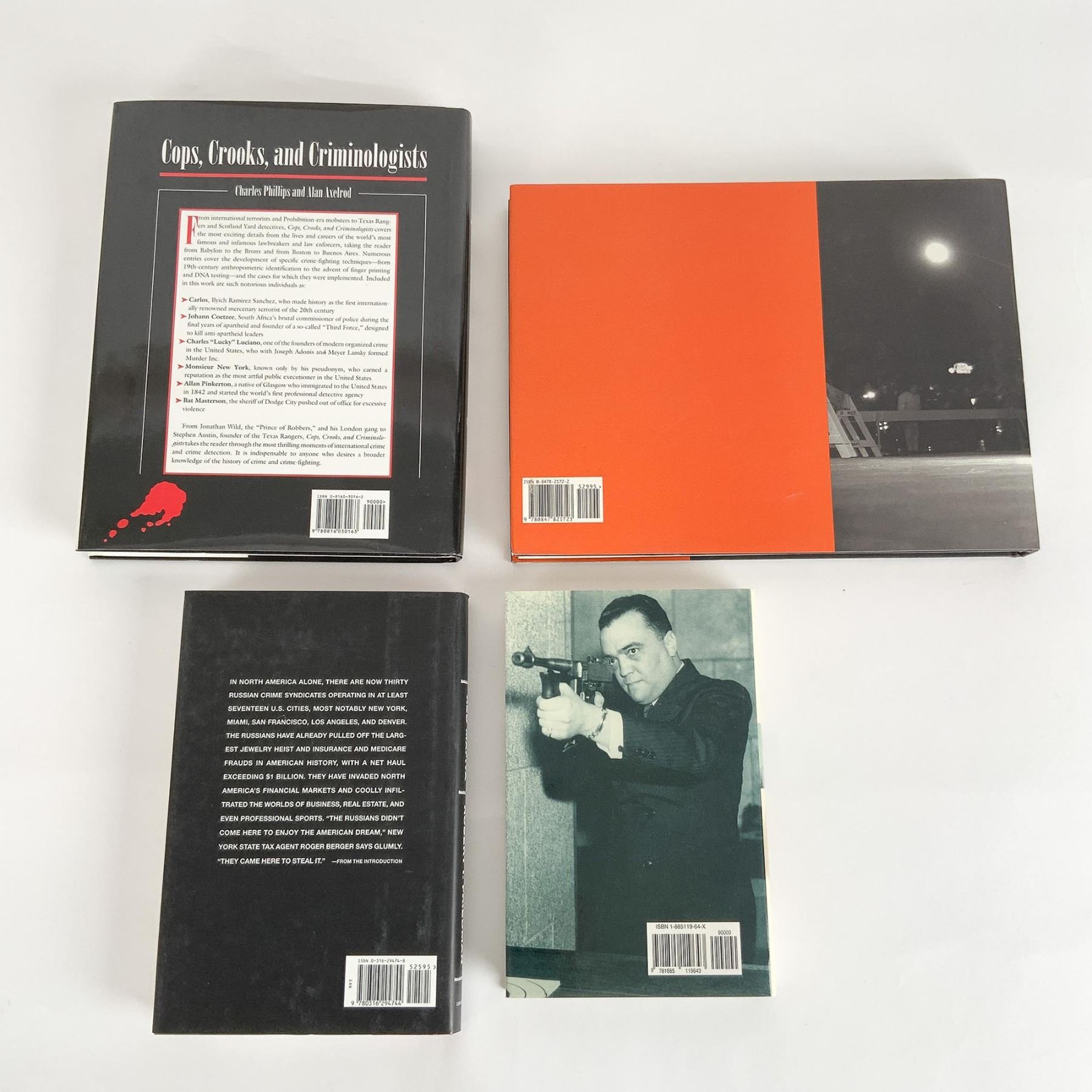 This collection of four books delves into crime, law enforcement, and organized crime history, offering a fascinating exploration of criminal activity and those who combat it. Cops, Crooks, and Criminologists: An International Biographical Dictionary of Law Enforcement provides an in-depth look at key figures in law enforcement, criminals, and criminologists. New York Noir showcases striking crime photography and noir-style images from New York's history. Robbing Banks: An American History 1831-1999 by L.R. Kirchner chronicles the history of bank robberies in America, from the Old West to modern heists. Red Mafiya: How the Russian Mob Has Invaded America by Robert I. Friedman investigates the rise of Russian organized crime in the United States. A compelling set for true crime enthusiasts, history buffs, and those interested in law enforcement. Largest book measures 12.25"L.