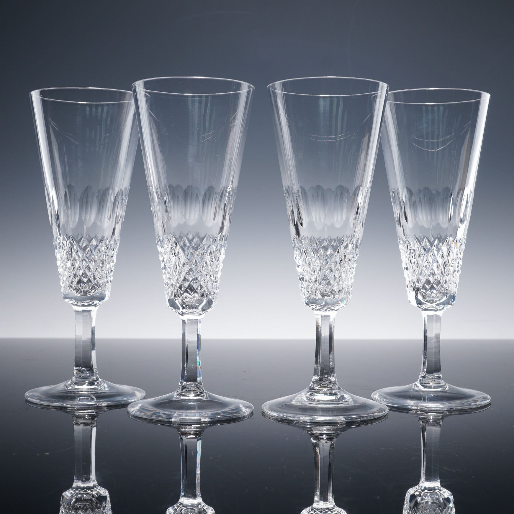 4pc Crystal Champagne Flutes, Diamond Pattern