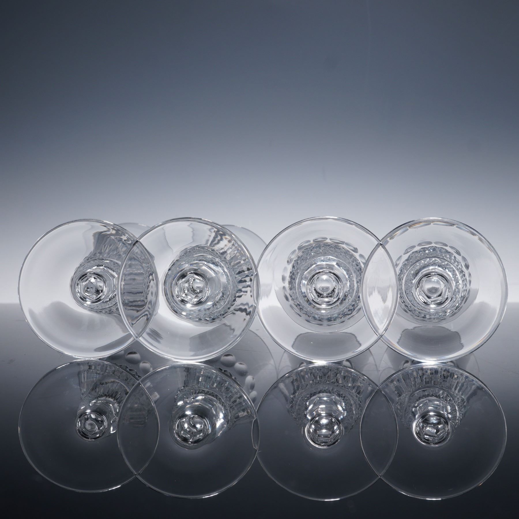 This set of four champagne flutes features a classic diamond-patterned base, enhancing their elegant design. The sleek, tall stems and flared bowls make them perfect for serving champagne or other celebratory drinks. Crafted from high-quality crystal, these flutes add a touch of sophistication to any occasion.