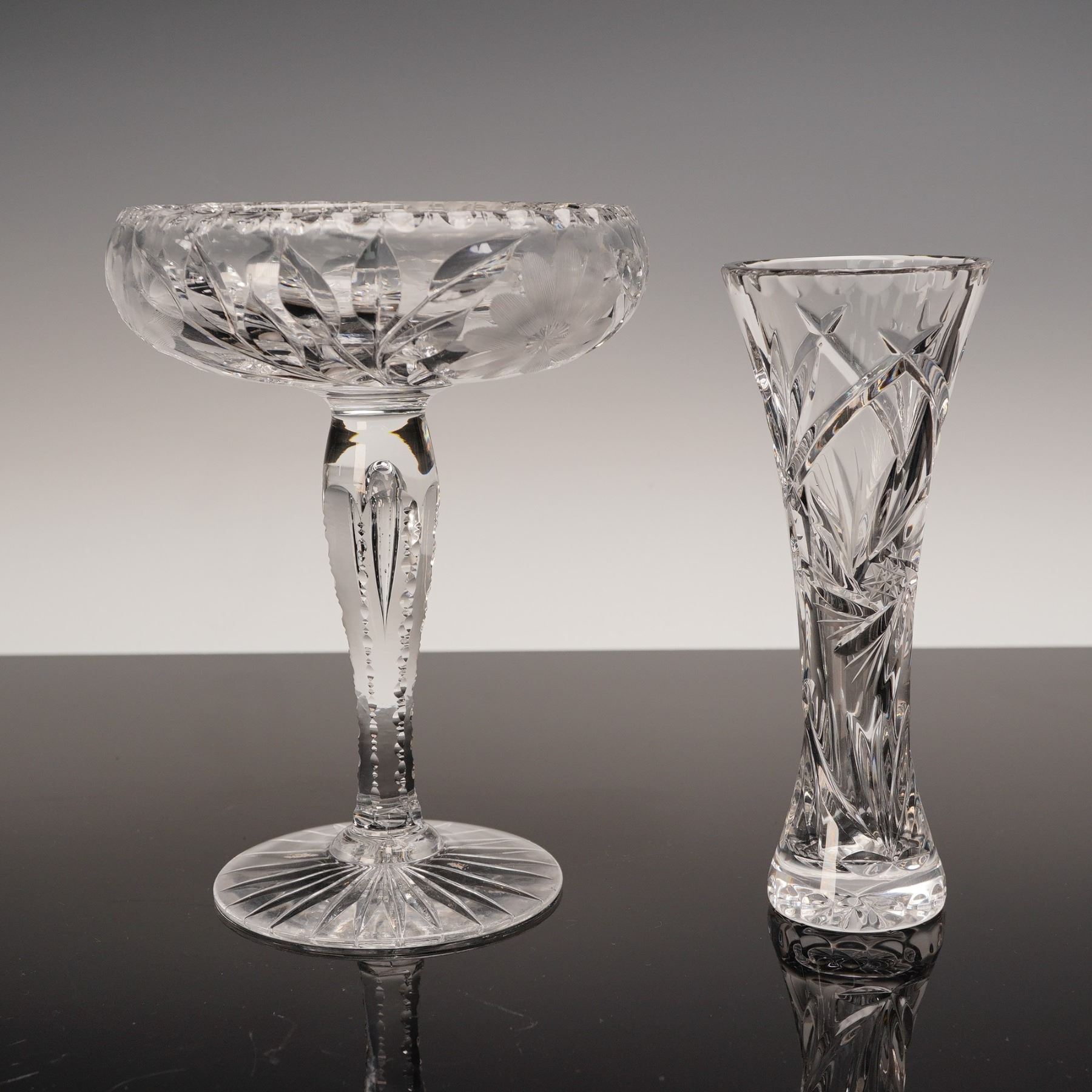 4pc Cut Glass Compote, Vase, and Pair of Candleholders