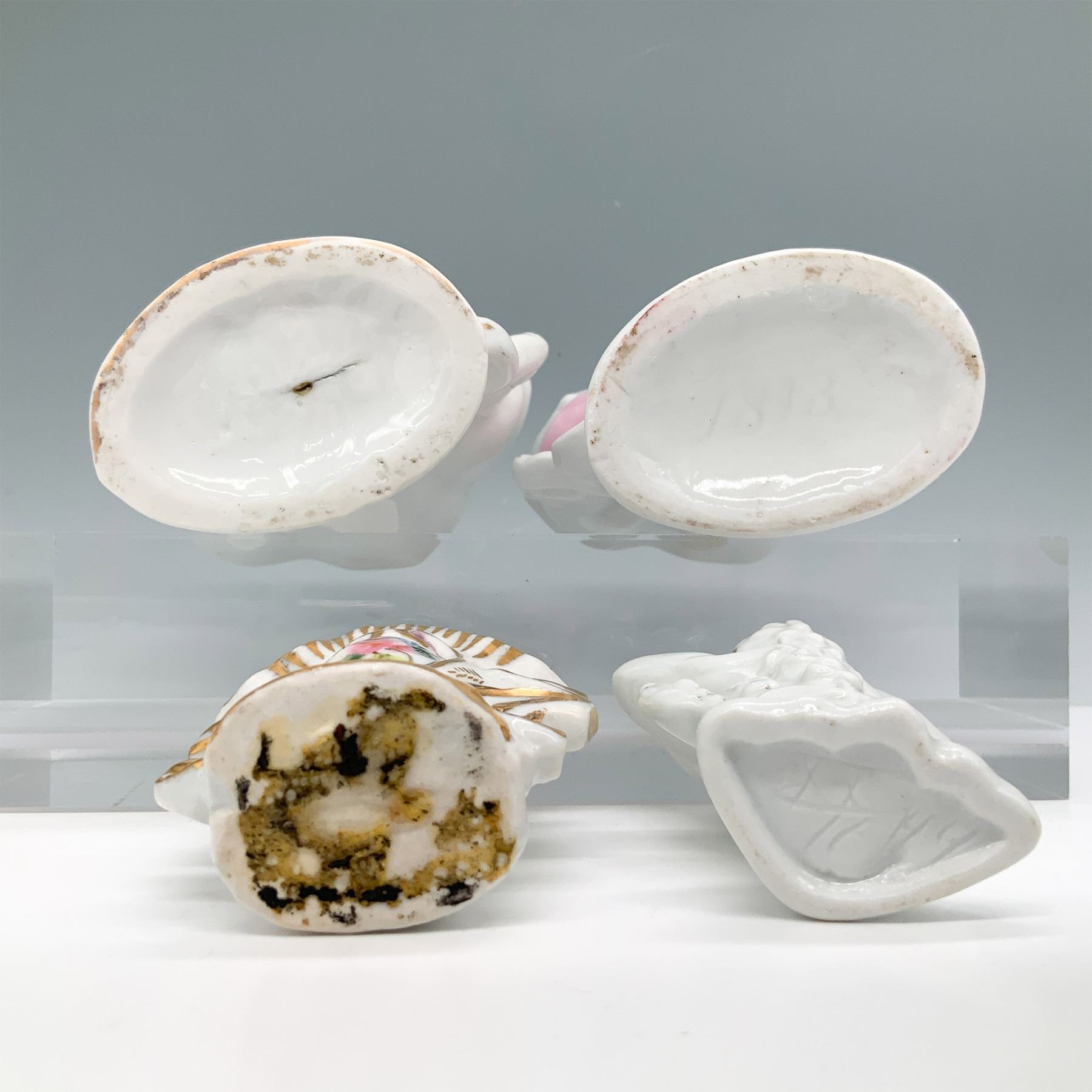 4pc Decorative Porcelain Spill Vases, Gold and Floral Design