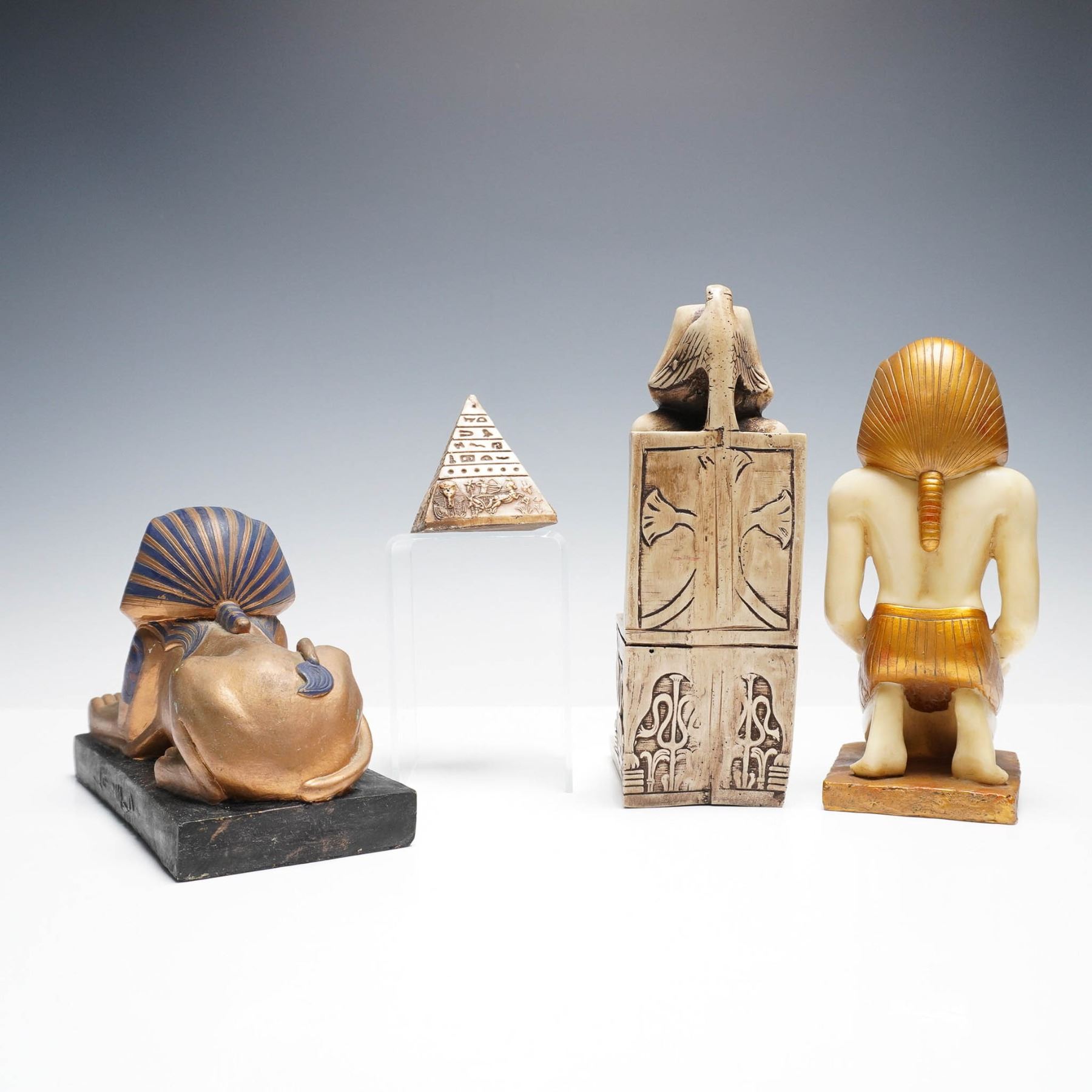 4pc Egyptian Style Figures, Pharaohs, Sphinx and Pyramid