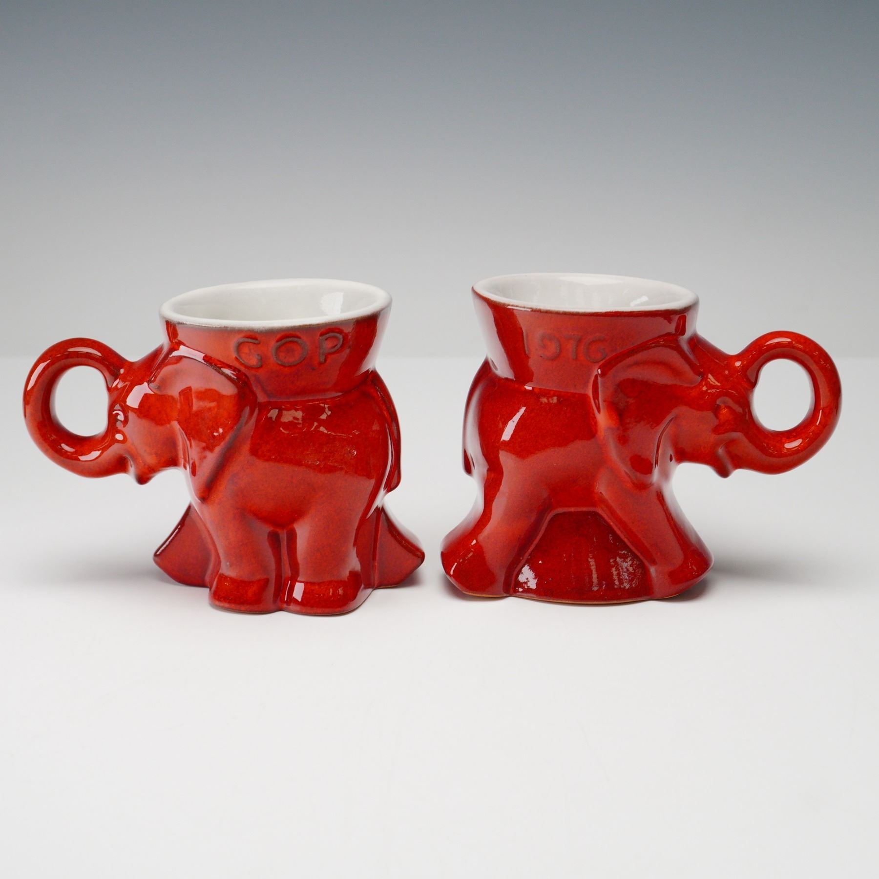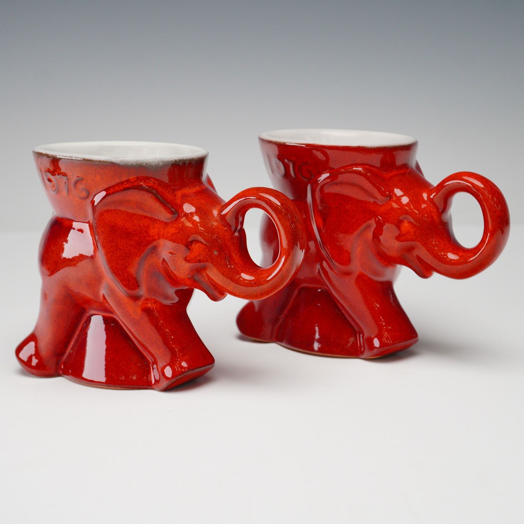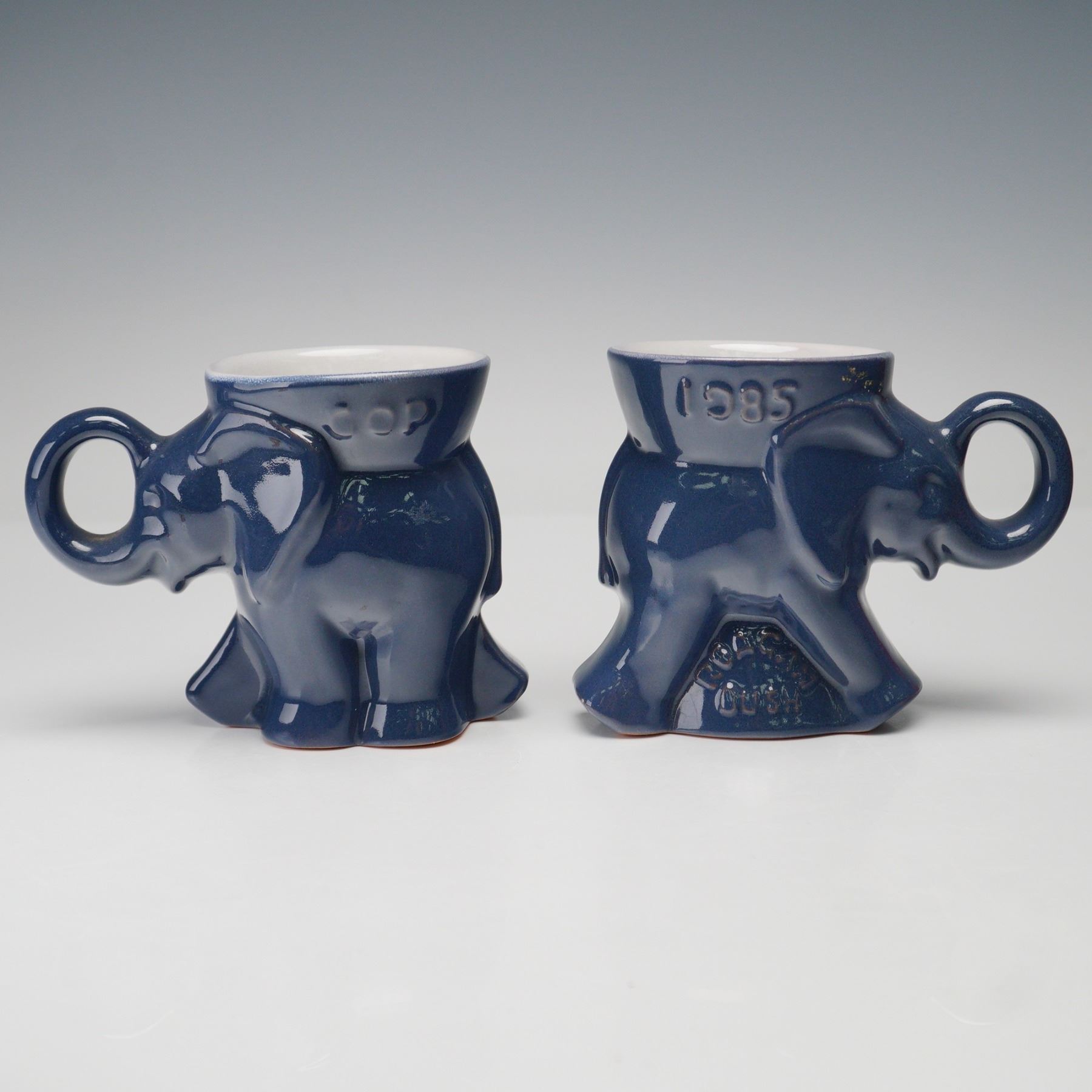 4pc Frankoma GOP Red and Blue Ceramic Elephant Mugs, 1976 & 1985