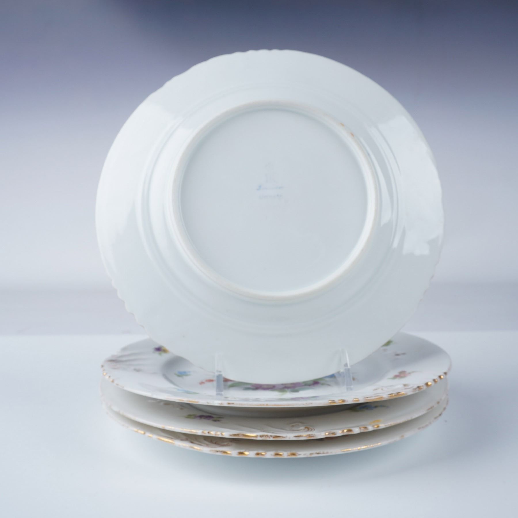 4pc German Porcelain Floral Dessert Plates, Schonwald