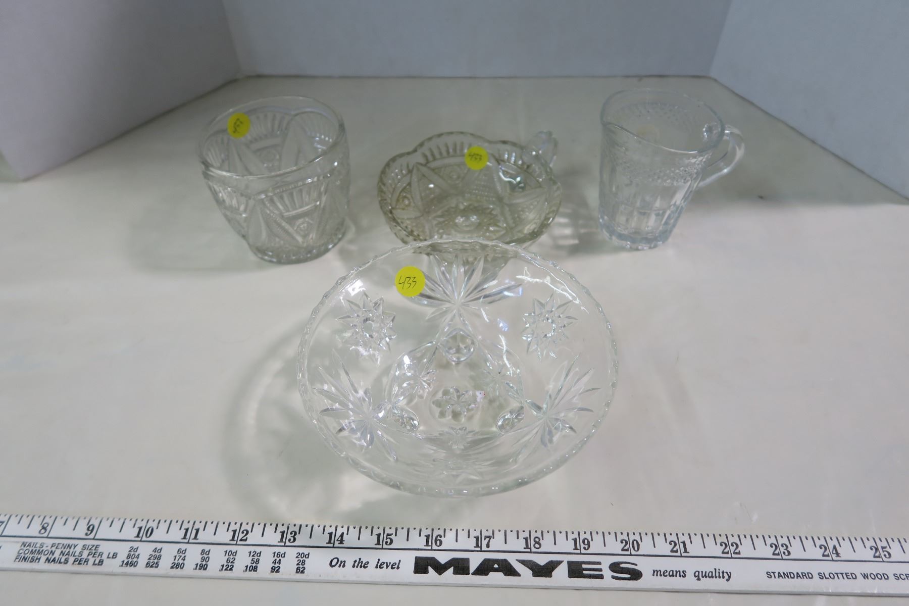 4pc. Glass - Cream, Sugar Bowl, Serving Dish