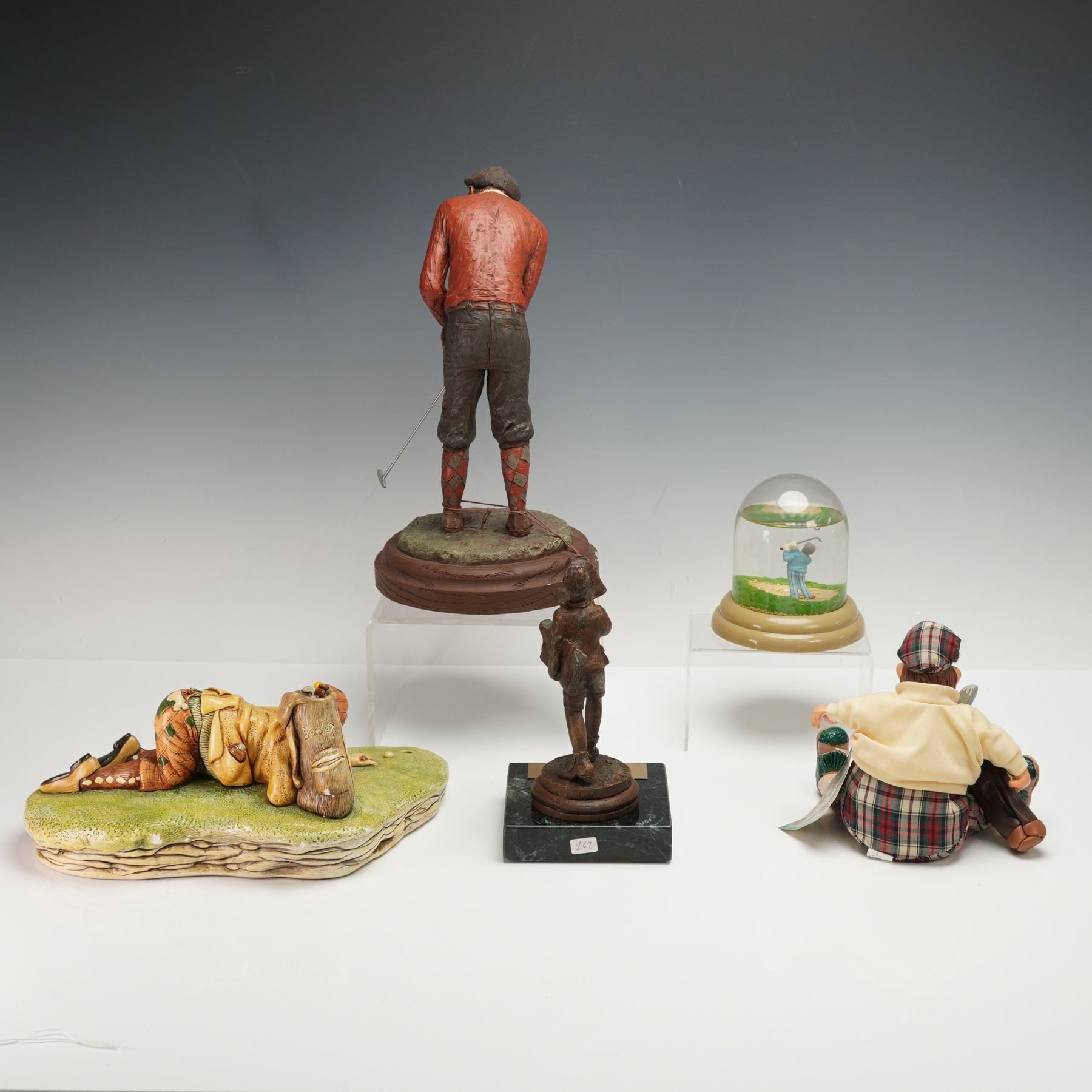 4pc Golfer Figurines and Newspaper Boy Trophy