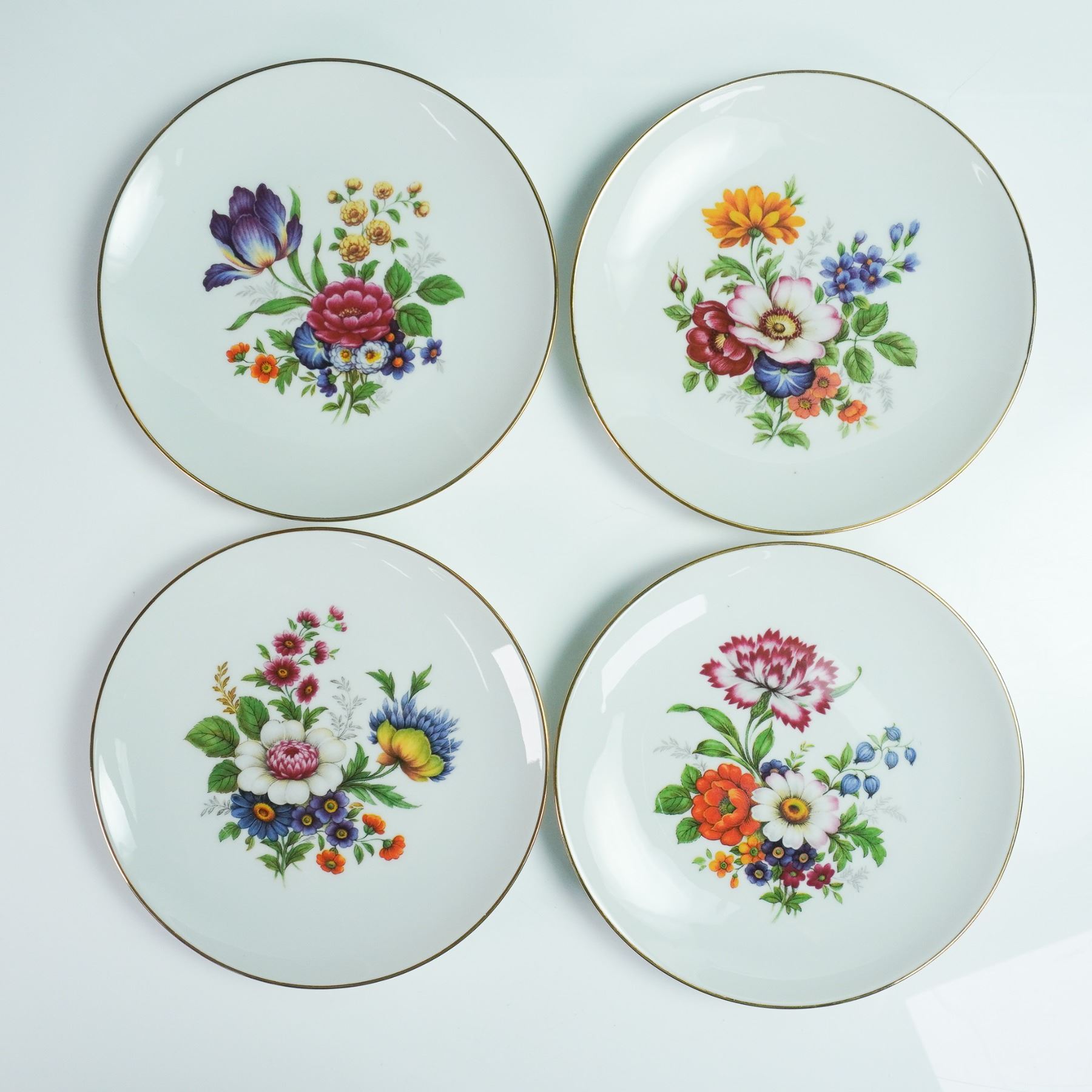 4pc Höftritz Floral Porcelain Plates, Western Germany