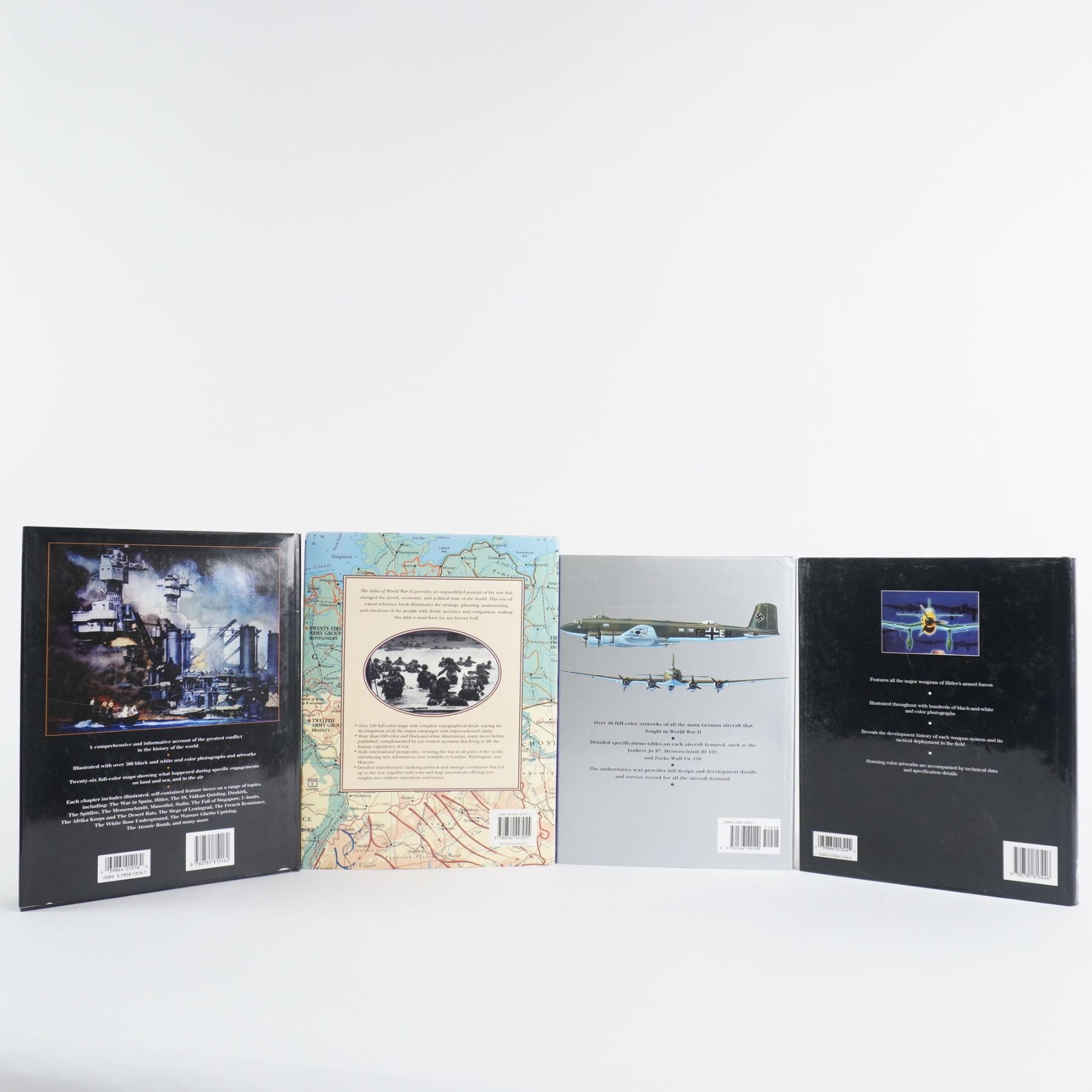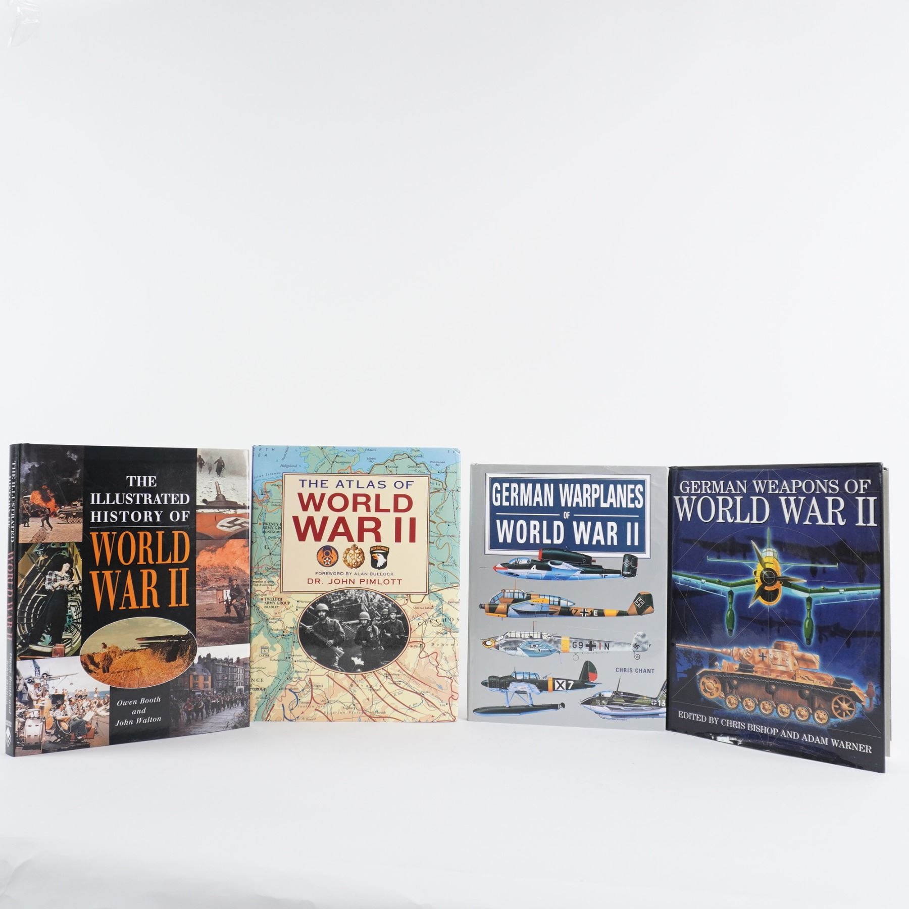 A compelling collection of four World War II books offering a detailed look at the global conflict, its military strategies, weaponry, and aerial warfare. The Illustrated History of World War II by Owen Booth and John Walton provides a visually rich historical account, while The Atlas of World War II by Dr. John Pimlott maps key battles and campaigns. German Weapons of World War II, edited by Chris Bishop, delves into the weaponry that shaped the war, and German Warplanes of World War II explores the aircraft that defined the air battles. A must-have set for history enthusiasts, collectors, and military scholars. Largest book measures 12"H.