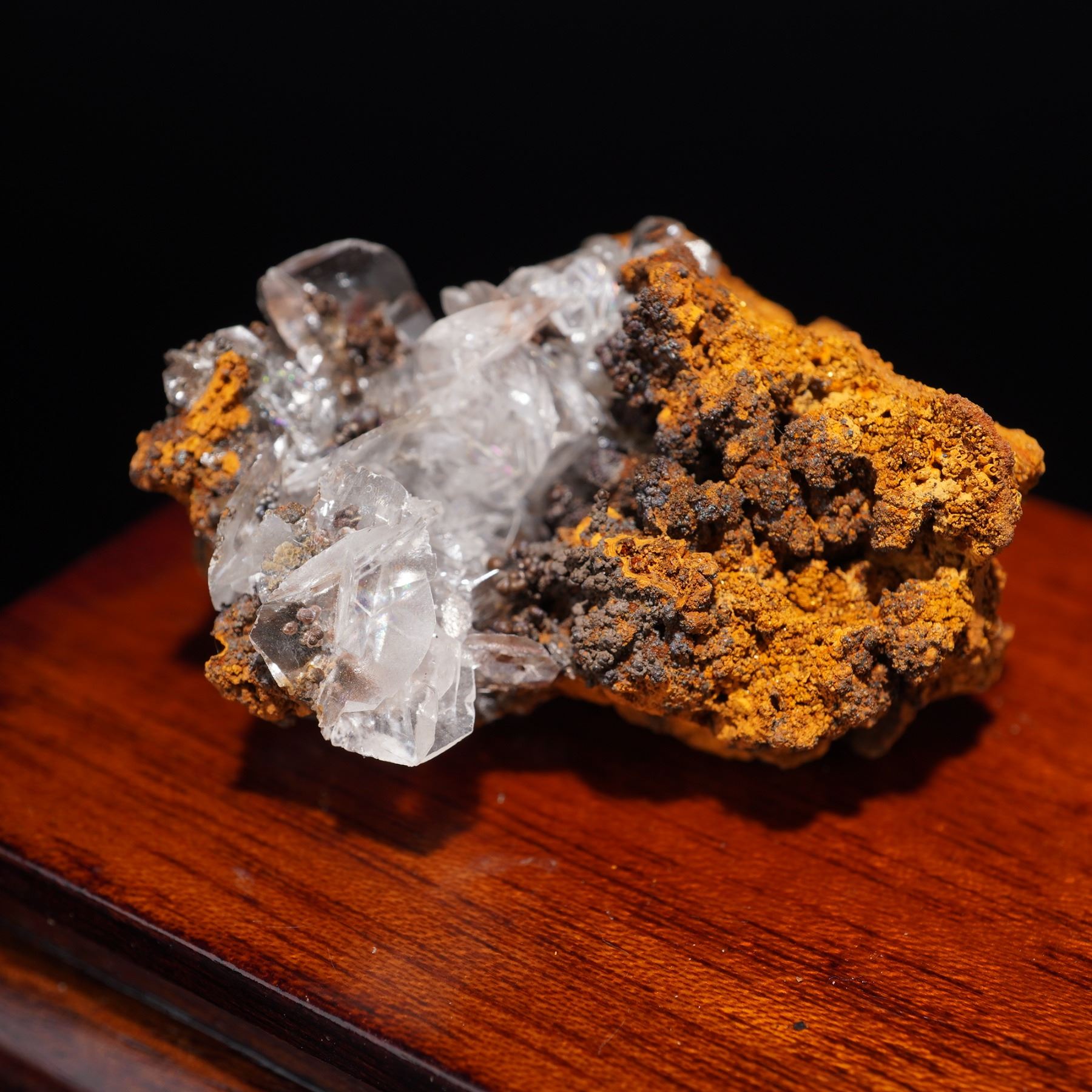 A captivating 4-piece mineral specimen collection featuring a diverse range of textures and colors. The standout piece, a Fluorapatite on Albite from Brazil, displays delicate blue-green prismatic crystals nestled within a gleaming white albite matrix. The set also includes a striking Tourmaline embedded in a contrasting feldspar host, a vivid Native Copper Ore specimen showcasing natural metallic luster with green-blue patina, and a beautiful Hemimorphite formation presenting glistening crystalline surfaces against a rich orange-brown matrix. Together, these specimens highlight the visual and geological diversity found in nature, an exceptional offering for collectors or as a decorative cabinet display.